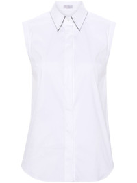 white cotton blend poplin texture beaded trim detail straight-point collar concealed front button fastening sleeveless curved hem - Colour: Light and natural - Composition: 72%Cotton 23%Polyamide 5%Elastane - Country Of Manufacture: Italy - MPN: M0091MA616C159