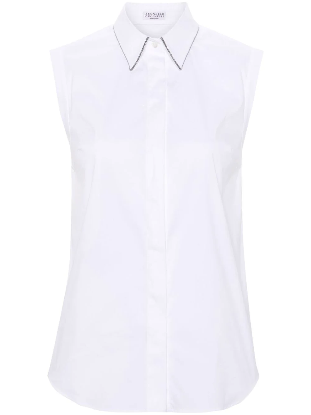 Stretch cotton poplin sleeveless shirt with shiny trim