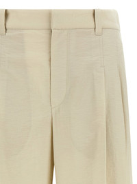 Cotton blend pants, formal model, mid waist with double front pleats, front stretched pleat, zip and hook closure, pockets. - Colour: White - Composition: 75% cotton, 25% polyamide - Country Of Manufacture: Italy - Dimension: True to size fit - MPN: M0F79P9189C9593