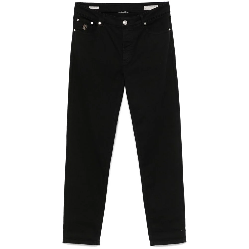 black front button fastening belt loops classic five pockets logo patch to the rear - Colour: Black - Composition: Outer Composition Cotton: 99.0%, Lining Composition Cotton: 100.0%, Outer Composition Elastane: 1.0% - Country Of Manufacture: Italy - MPN: M277PD3210C101 - Size Family: IT