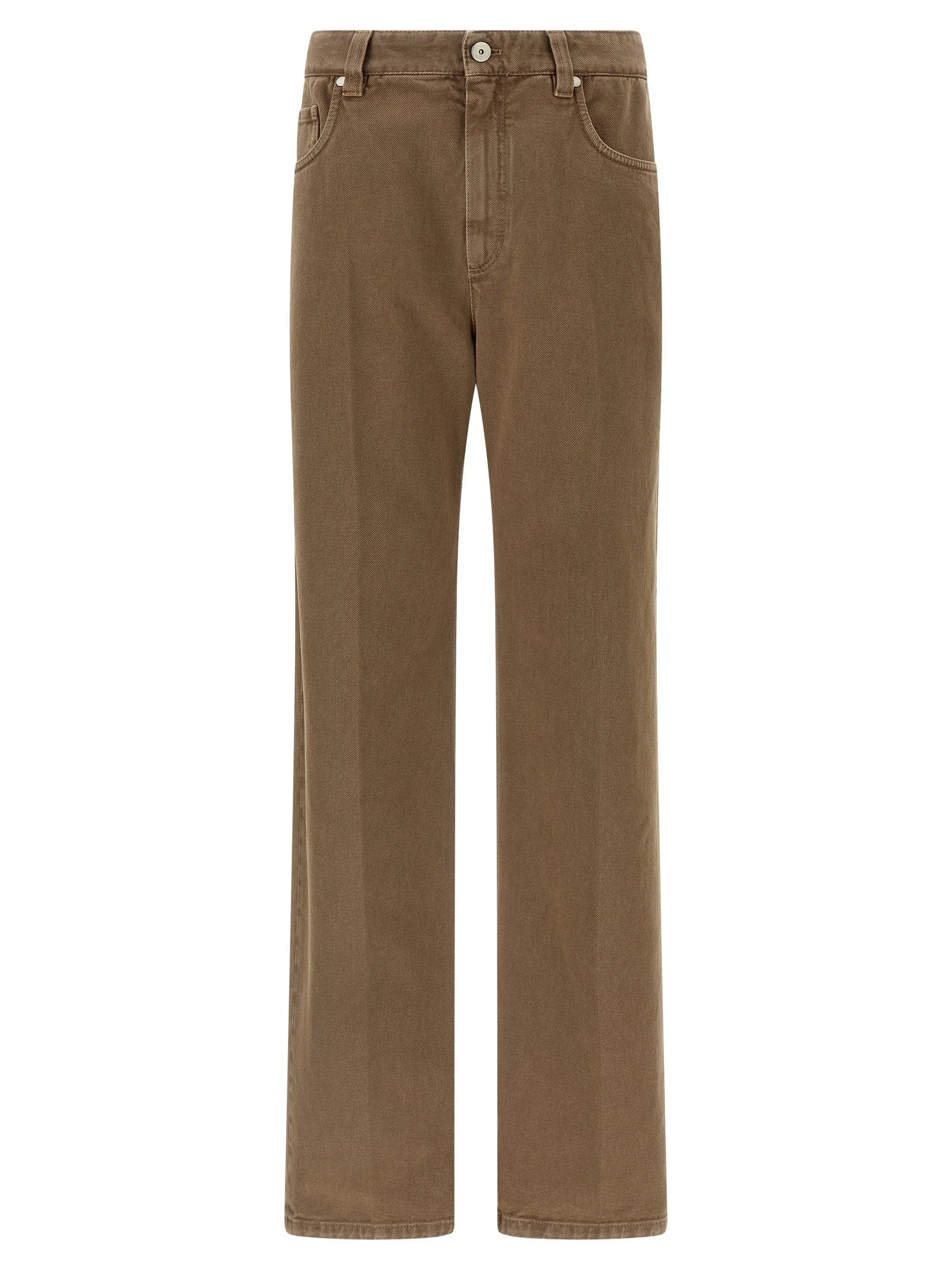 Garment-dyed denim trousers, 5-pocket model, medium waist, straight leg with front stretched pleat, zip and button closure. - Colour: Beige - Composition: 100% cotton - Country Of Manufacture: Italy - Dimension: True to size fit - MPN: M0H81P5568C1799