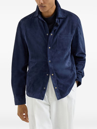 blue suede texture chest pocket button fastening long sleeves point collar - Colour: Blue and green - Composition: 100% Lamb Leather - Country Of Manufacture: Italy - MPN: MPCFN2039C6757