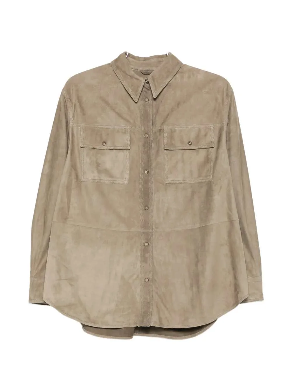 Leather shirt with pocket Made in Italy Highlights Green Leather Point collar Front button closure Long sleeves Patch pockets on the chest Curved hem Composition Outer: 100% calf suede, 100% brass Lining: 74% acetate, 26% silk Care Instructions Specialist cleaning ID MPCAL7436 - Colour: Brown - Composition: Leather, 100%LE - Country Of Manufacture: Italy - Dimension: 0,5 - MPN: MPCAL7436C8850