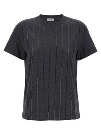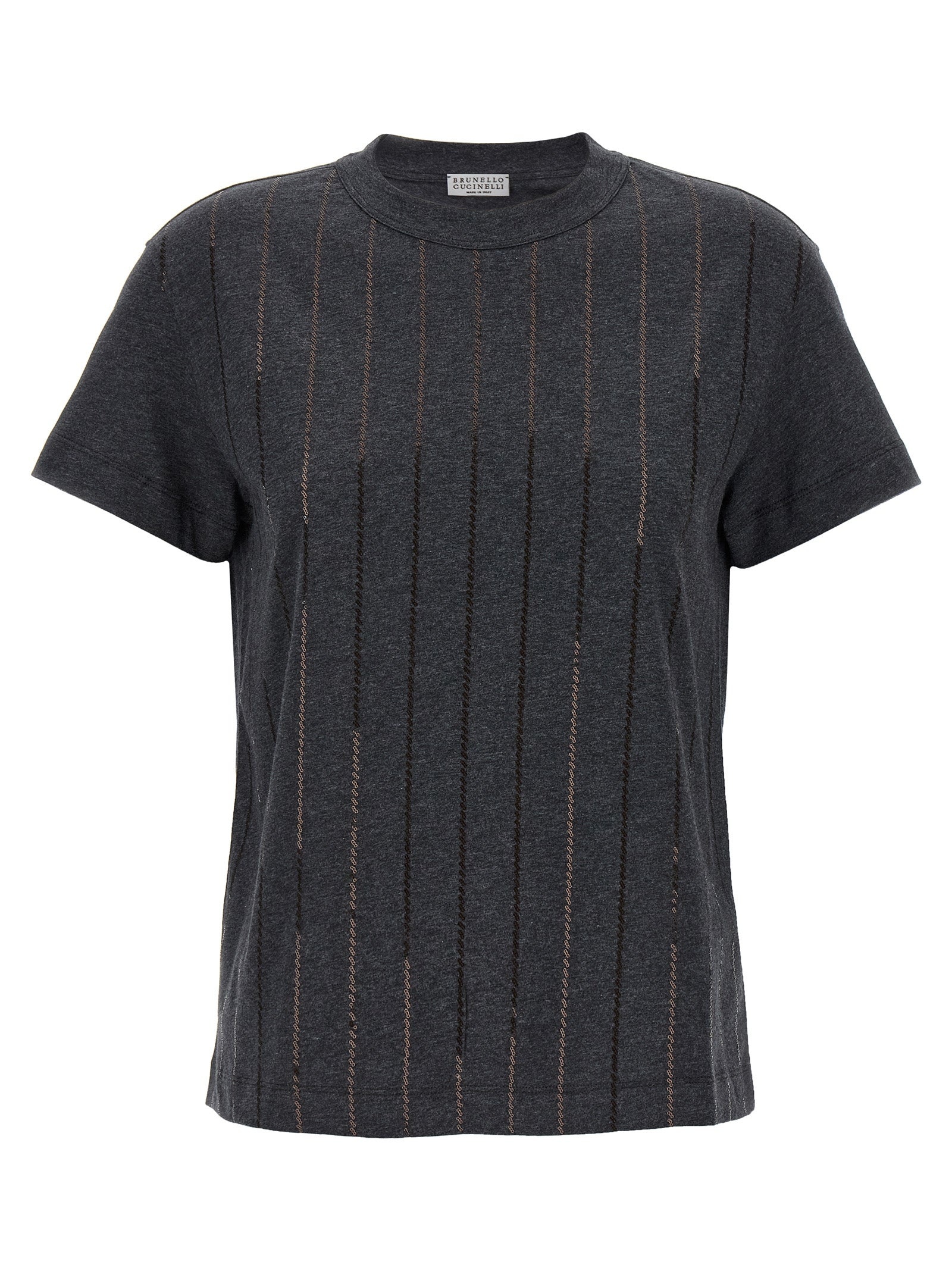 Cotton t-shirt with micro striped sequins at the front, crew neck, short sleeves. - Colour: Gray - Composition: 100% cotton - Country Of Manufacture: Italy - Dimension: Comfort fit - MPN: MPT81SO800C8127
