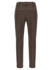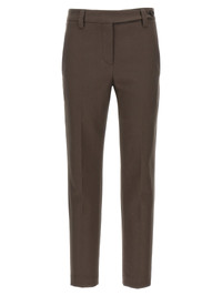 Cotton pants, crop model, stretched pleat, zip hook and button closure on the front, pockets, straight leg, back Monile detail. - Colour: Brown - Composition: 97% cotton, 3% elastane - Country Of Manufacture: Italy - Dimension: true to size fit - MPN: MP126P8703C4222