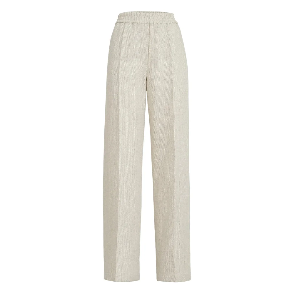 beige chevron pattern elasticated waistband wide leg rear patch pockets - Colour: Neutral - Composition: Cotton: 12.0%, Linen/flax: 88.0% - Country Of Manufacture: Italy - MPN: MH528P9131C001 - Size Family: IT