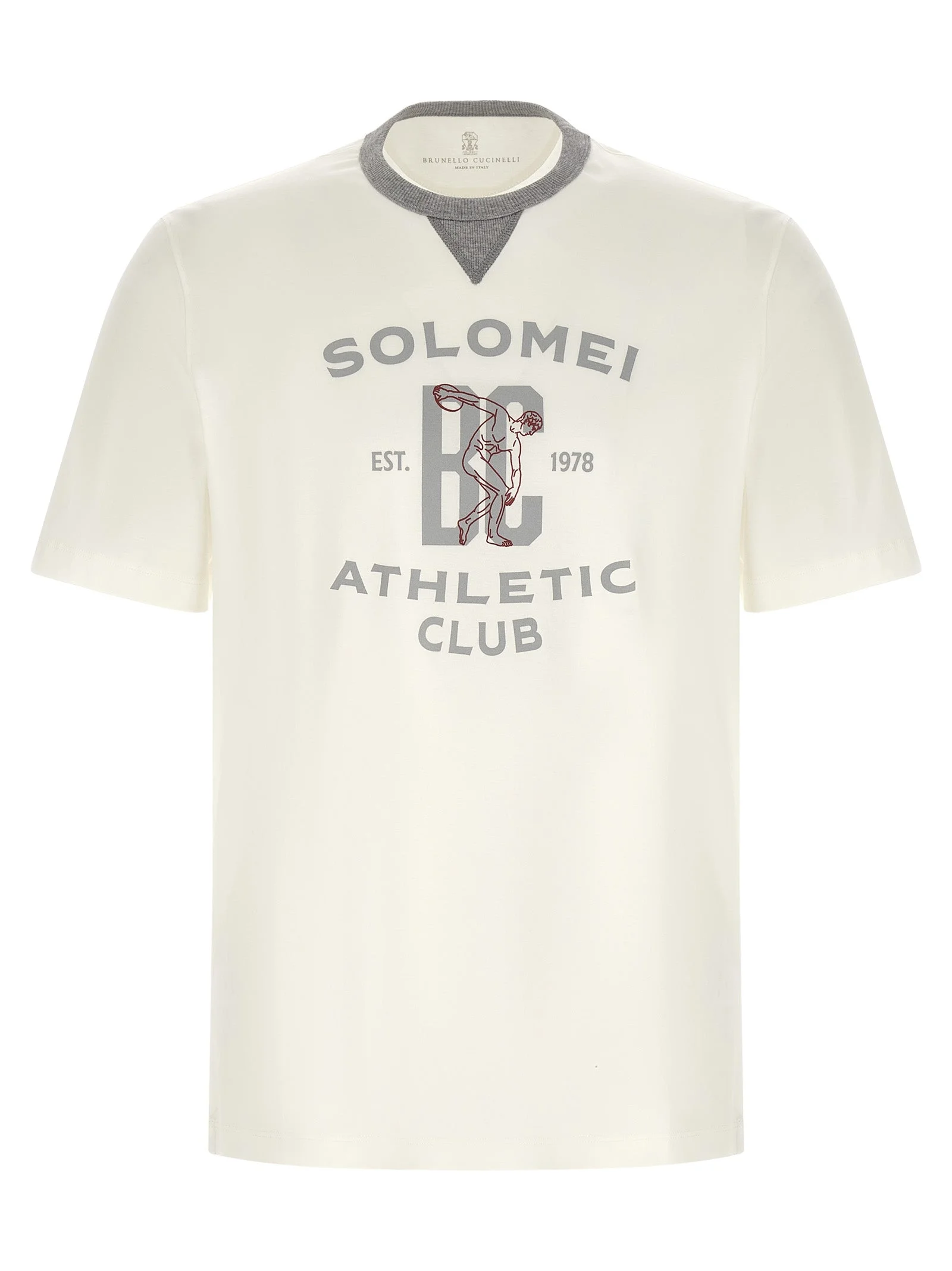 Cotton jersey T-shirt with front print, contrasting stretch ribbed knit crewneck, short sleeves, side splits. - Colour: White - Composition: 100% cotton - Country Of Manufacture: Italy - Dimension: true to size fit - MPN: M0B131001GCFR27