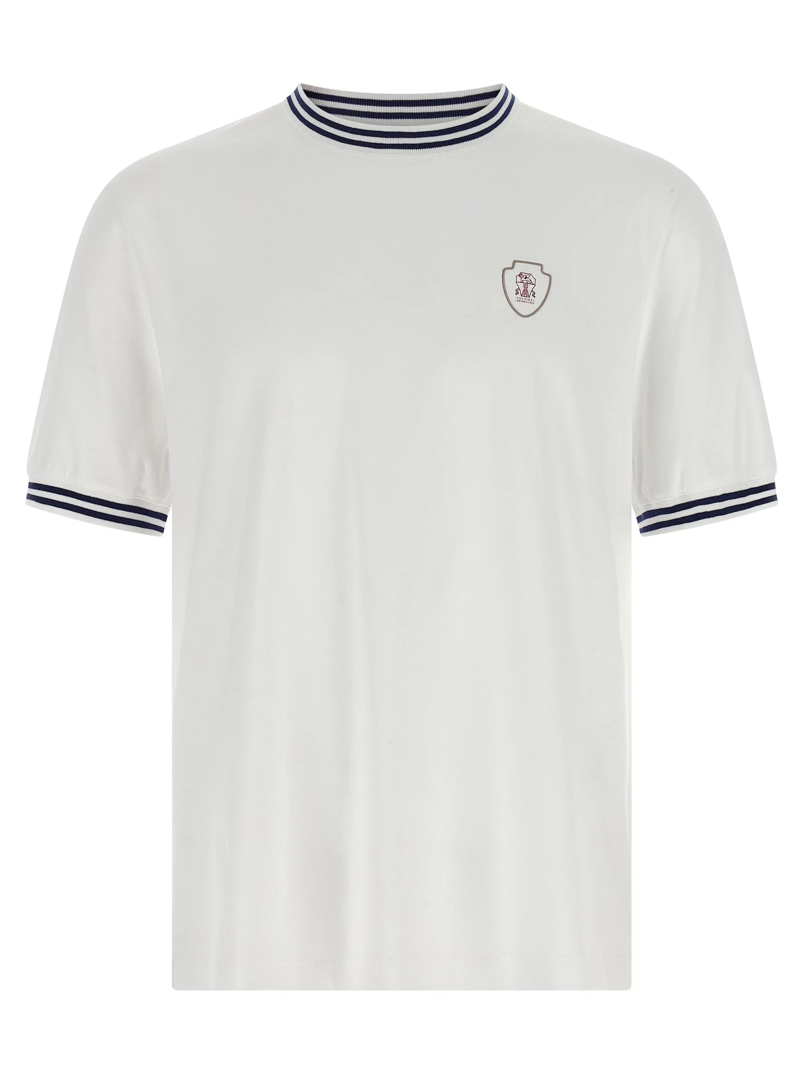 Cotton jersey T-shirt with contrasting stretch ribbed knit details, front Solomeo emblem embroidery, crew neck, short sleeves. - Colour: White - Composition: 100% cotton - Country Of Manufacture: Italy - Dimension: true to size fit - MPN: M0B131386TC6159