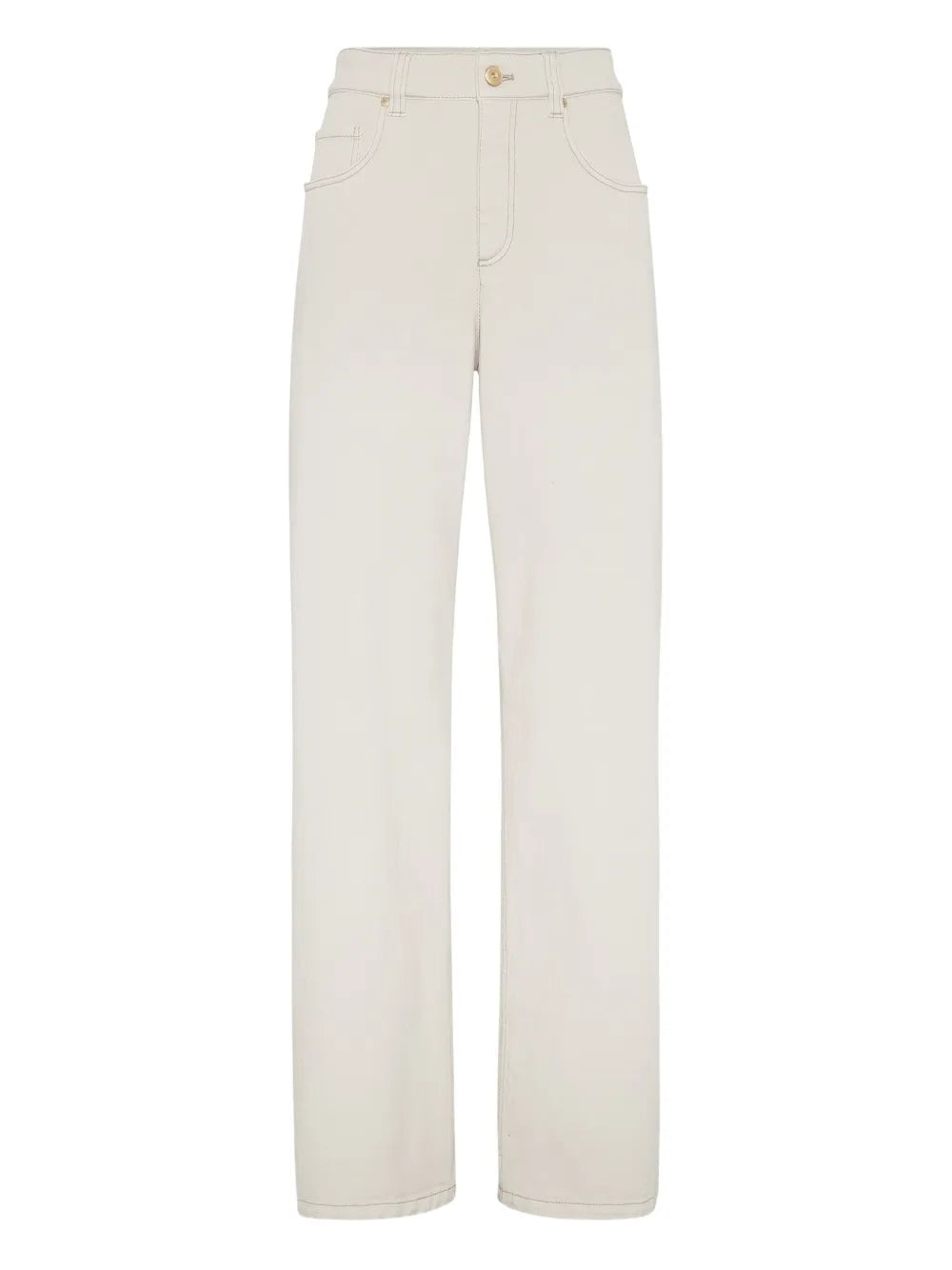 Straight Jeans Origin: Italy Features Beige Front button and zip closure Five-pocket design Belt loops Back logo patch Composition 100% cotton Washing Instructions Read the manufacturer`s instructions ID MH137P4021 - Colour: White - Composition: Cotton, 96%CO 4%EA - Country Of Manufacture: Italy - Dimension: KG 0,5 - MPN: MH137P4021C9443WARMWHITE