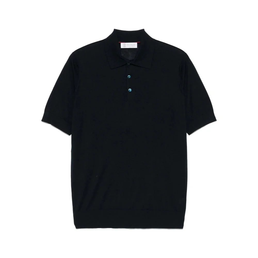 navy blue front button placket polo collar short sleeves - Colour: Blue - Composition: Silk: 62.0%, Cotton: 38.0% - Country Of Manufacture: Italy - MPN: MNB805405C2425 - Size Family: IT