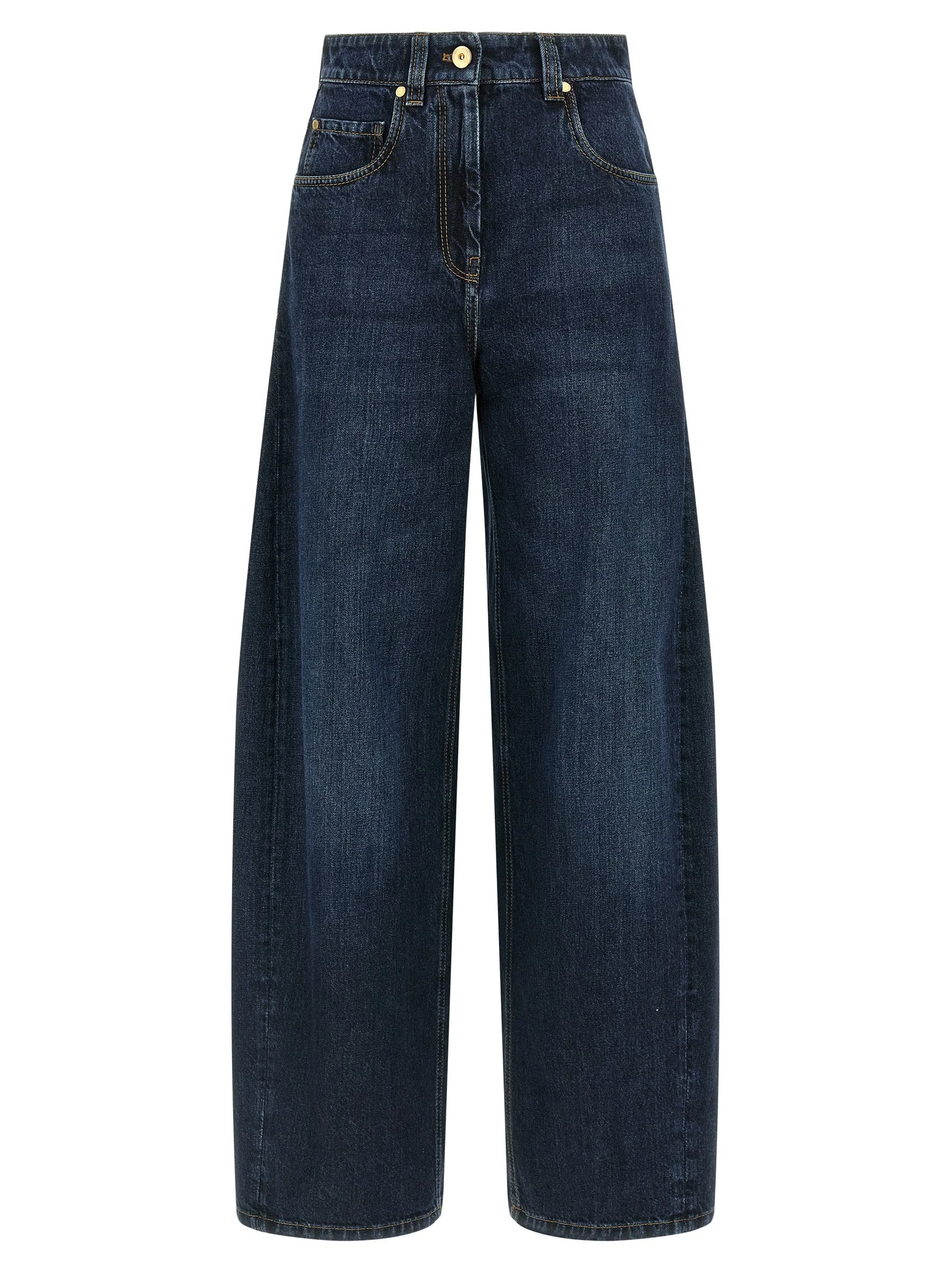 'Wide Barrel full lenght' mid-rise jeans in cotton denim with 5 pockets, front zip and button closure, belt loops at the waist with Monile detail at the back, leather back logo tag with embossed logo detail. - Colour: Blue - Composition: 100% cotton - Country Of Manufacture: Italy - Dimension: True to size fit - MPN: MA095P4059C9370
