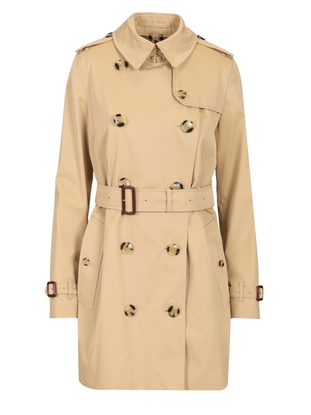Burberry "Heritage Kensington" rainproof cotton abardine trench coat with Burberry Check cotton lining, double-breasted button fastening, hook-and-eye collar, chin strap, epaulettes, belt, side buttoned welt pockets, belted cuffs and buttoned back vent - Colour: Beige - Composition: 100%COTTON - Country Of Manufacture: GB - MPN: 8079417A1366