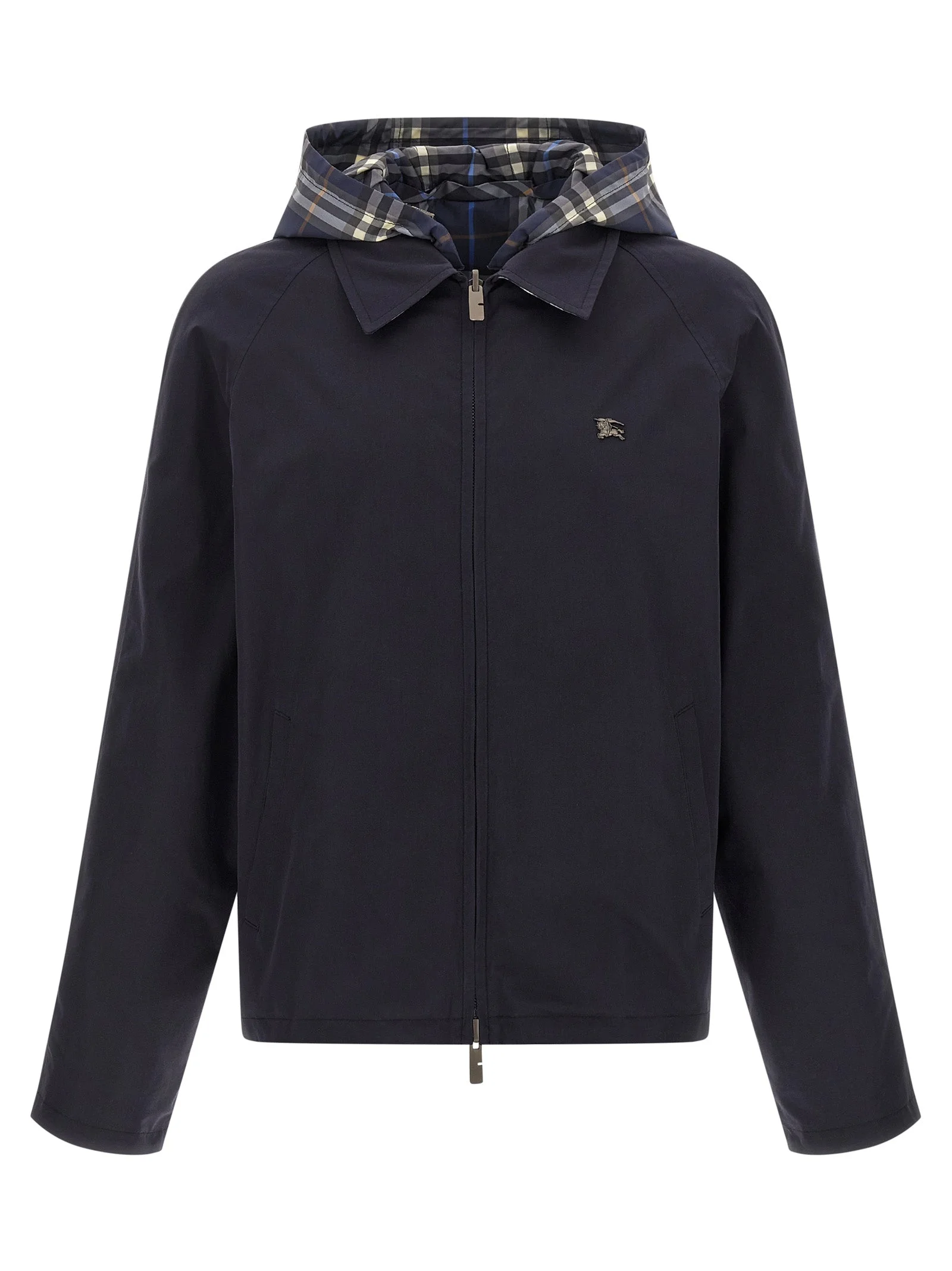 'Hodson' reversible jacket in solid cotton and Burberry Check fabric, adjustable and removable hood, shirt collar, antiqued metal 'Equestrian Knight Design' logo and front zip closure, pockets, long sleeves with adjustable cuffs. - Colour: Blue - Composition: 100% cotton - Country Of Manufacture: Italy - Dimension: true to size fit - MPN: 8118012SILHOUETTEBLUE