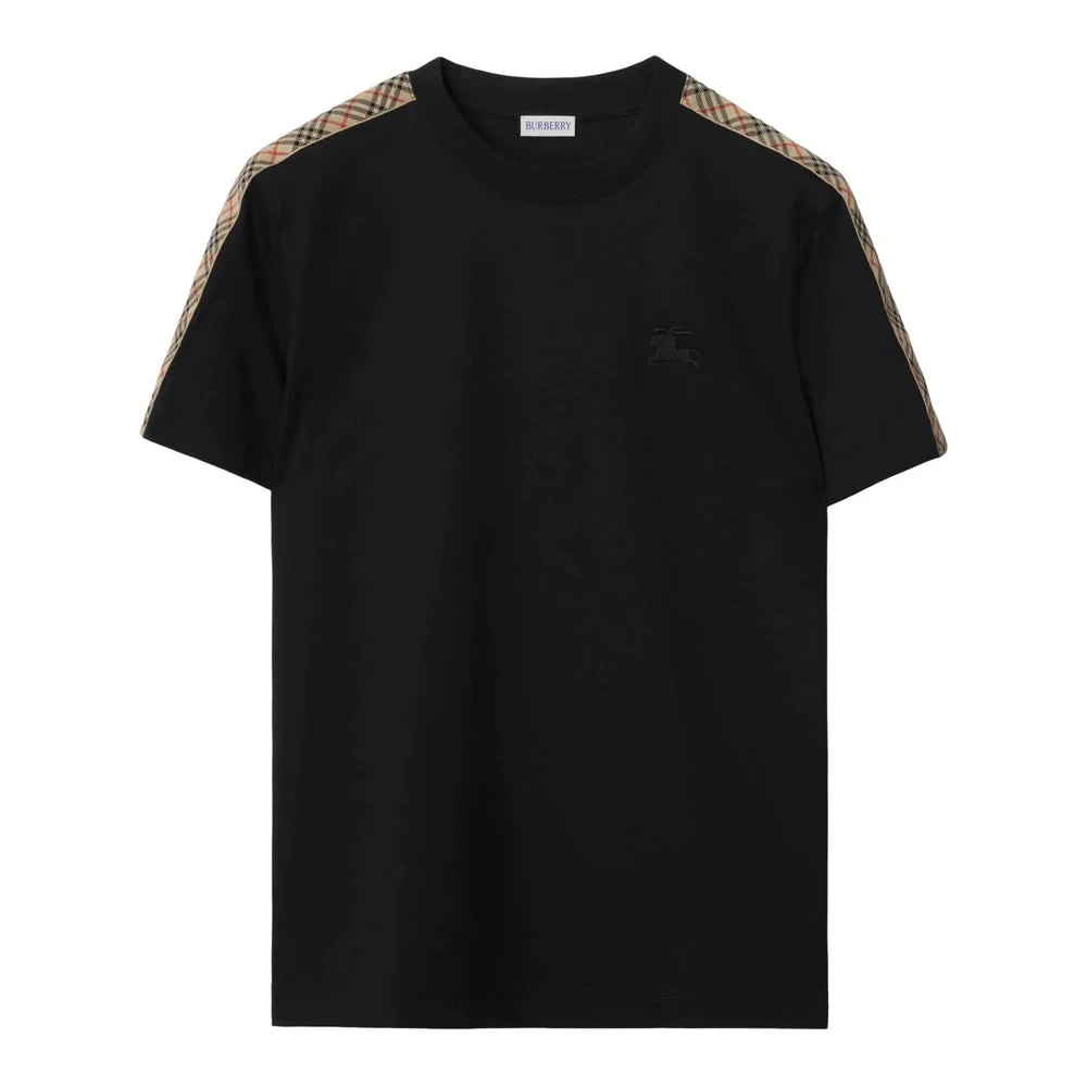 black signature Equestrian Knight motif contrasting trim crew neck short sleeves - Colour: Black - Composition: Cotton: 100.0% - Country Of Manufacture: Viet Nam - Dimensions: chest: 102.0 centimetres, sleeve length: 44.0 centimetres, length: 68.0 centimetres, shoulder width: 45.0 centimetres - MPN: 8106248SU25MWTAA1189