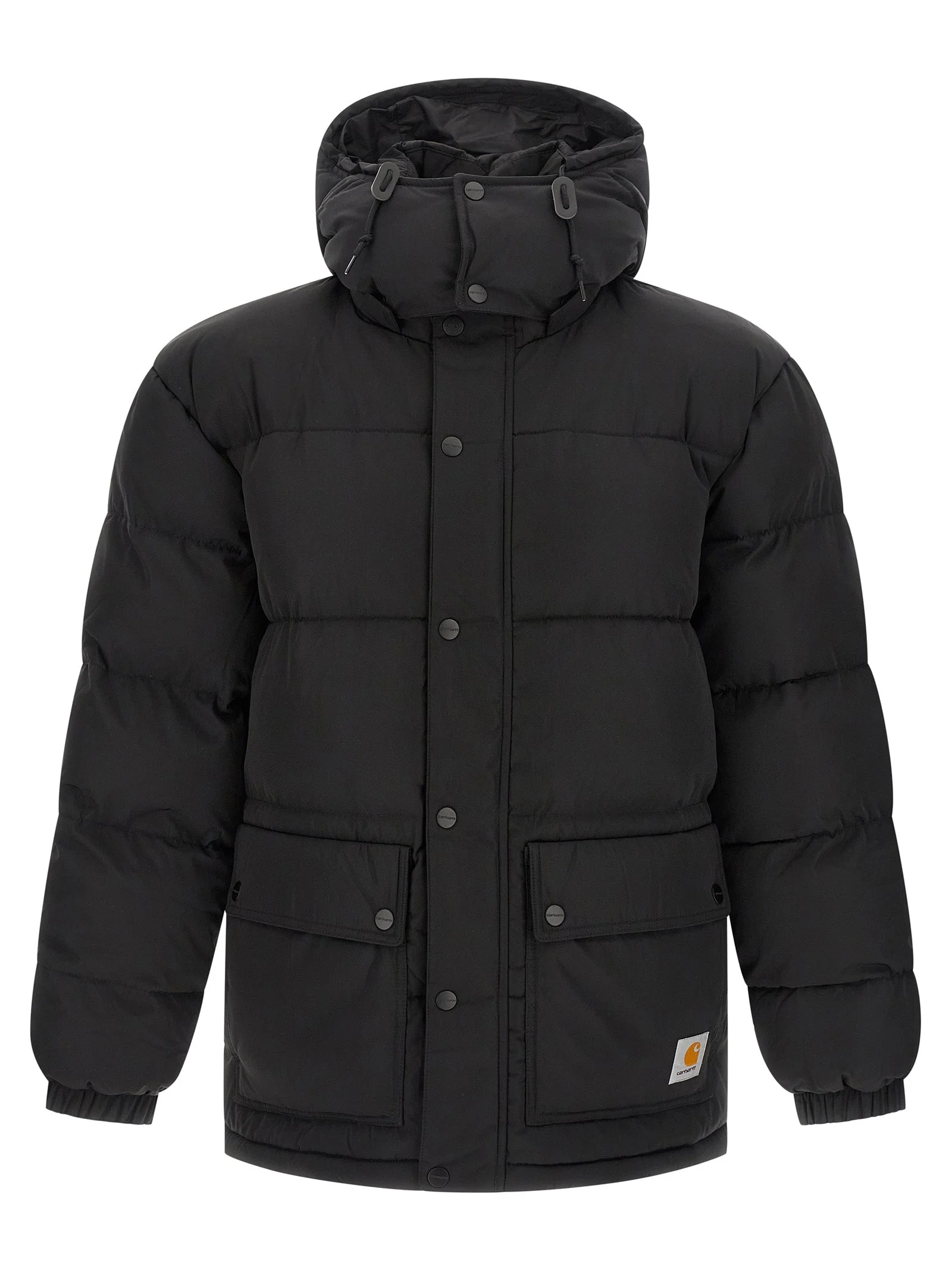 'Brent Jacket' padded and quilted nylon down jacket, removable hood, front pockets with logo patch, front zip closure, long sleeves with elastic cuffs. - Colour: Black - Composition: 100% recycled nylon - Country Of Manufacture: bangladesh - Dimension: True to size fit - MPN: I03536189XX