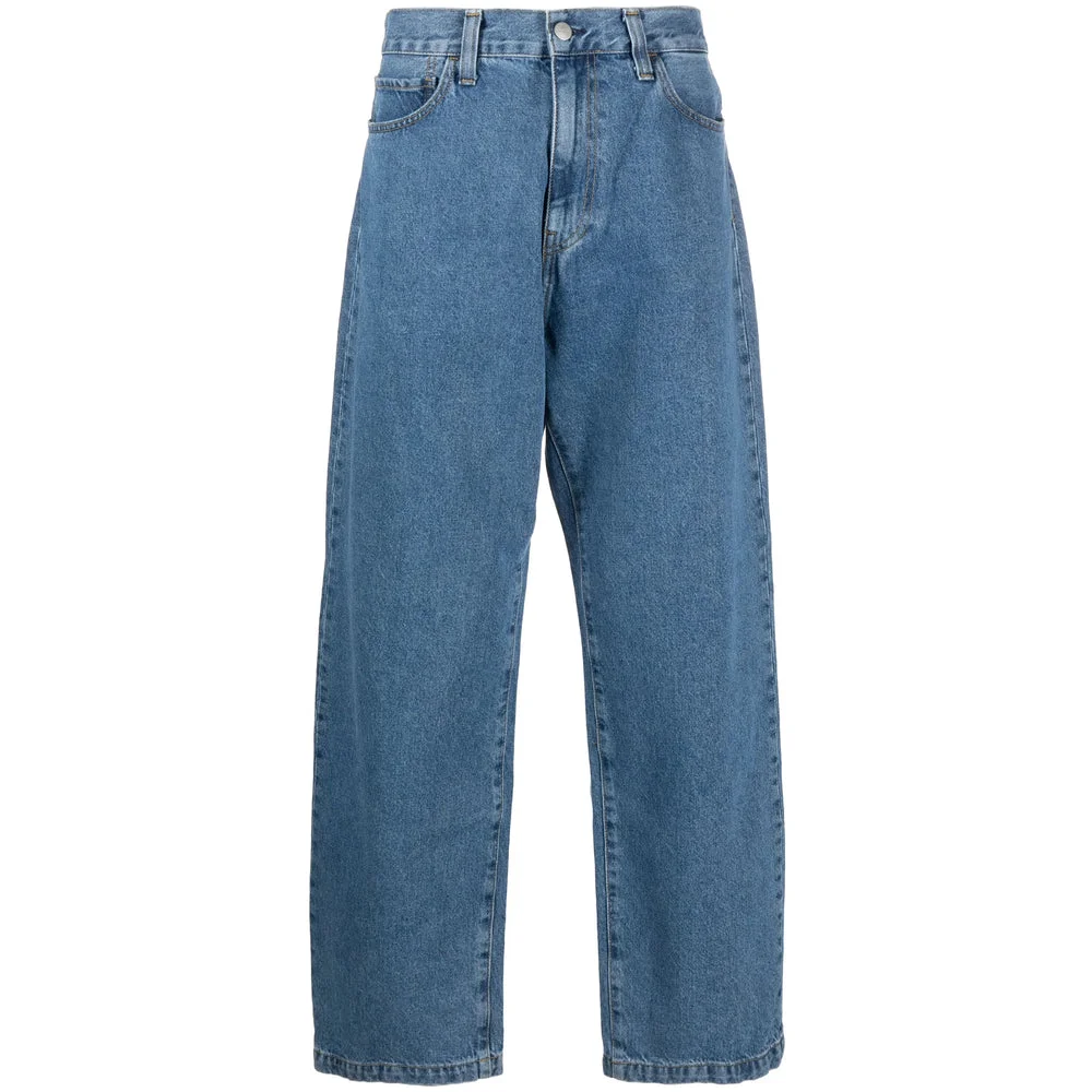blue cotton blend washed denim logo patch to the rear belt loops front button and zip fastening classic five pockets tapered leg - Colour: Blue - Composition: Outer Composition Cotton: 100.0%, Lining Composition Cotton: 35.0%, Lining Composition Polyester: 65.0% - Country Of Manufacture: Tunisia - MPN: I0304680160