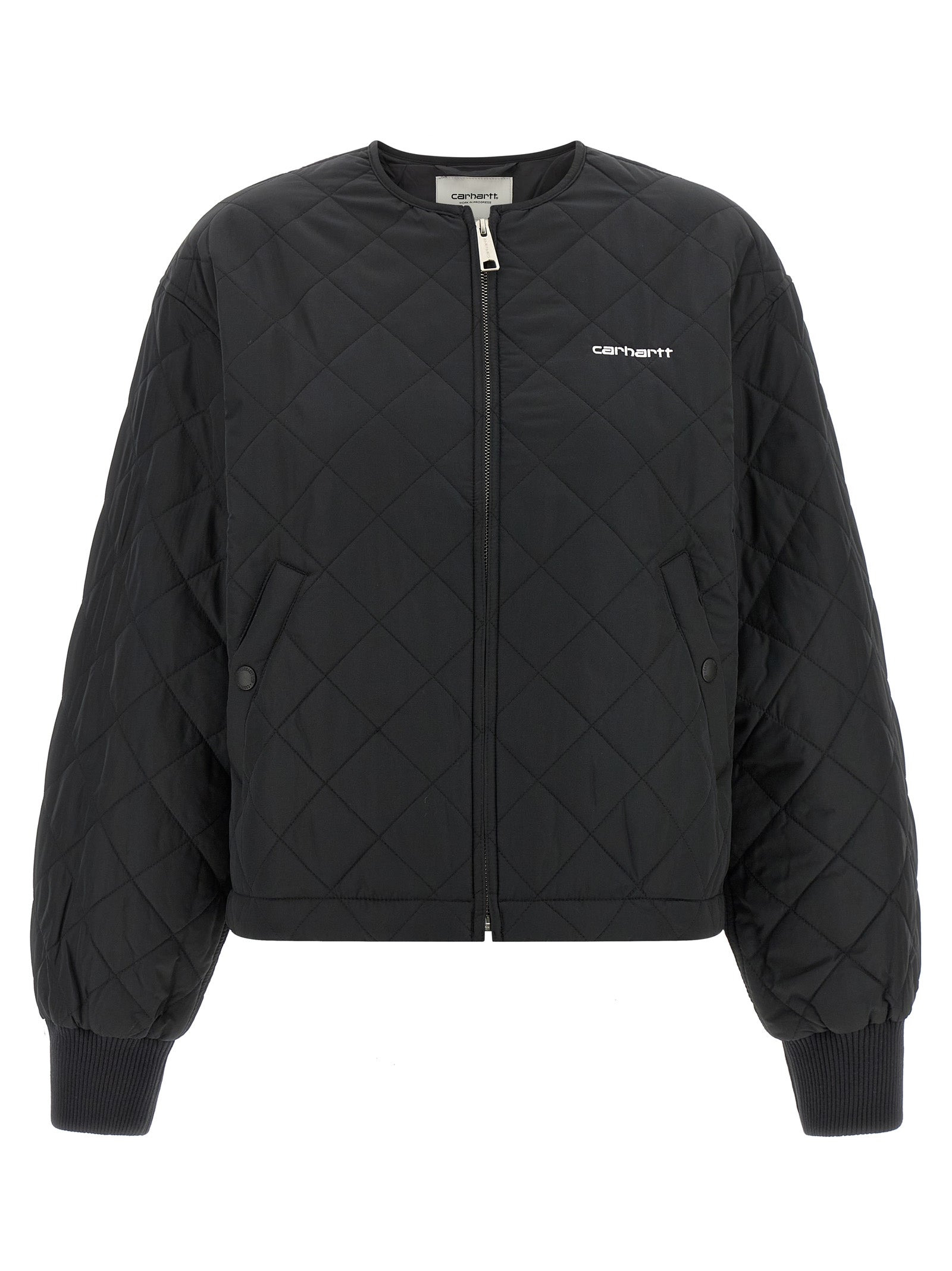 Elma' quilted waterproof polyester jacket with light padding, round neckline, tone-on-tone logo embroidery and front zip closure, pockets, long sleeves with stretch knit cuffs and dropped shoulders, drawstring on the hem. SUSTAINABLE: Product made from recycled polyester. - Colour: Black - Composition: 100% recycled polyester - Country Of Manufacture: bangladesh - Dimension: oversized fit - MPN: I0353760D2XX