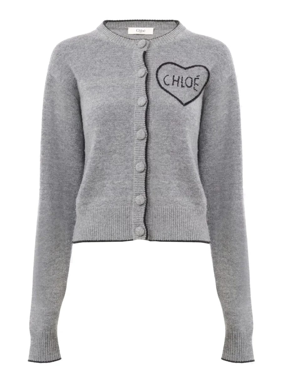 Fitted Cardigan With Logo - Colour: Grey - Composition: 71% WOOL 29% CASHMERE - Country Of Manufacture: China - MPN: 26SMC08710012 - Size Family: S/M/L