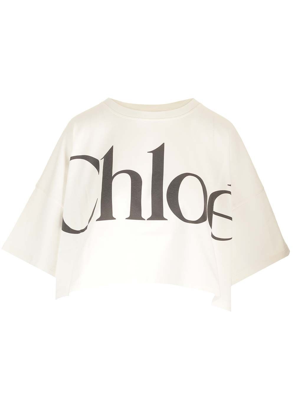 Crop top from Chloe with maxi printed logo, dropped shoulder, boxy fit. - Colour: White - Composition: 100% cotton - Country Of Manufacture: IT - MPN: CH24AJH09183101