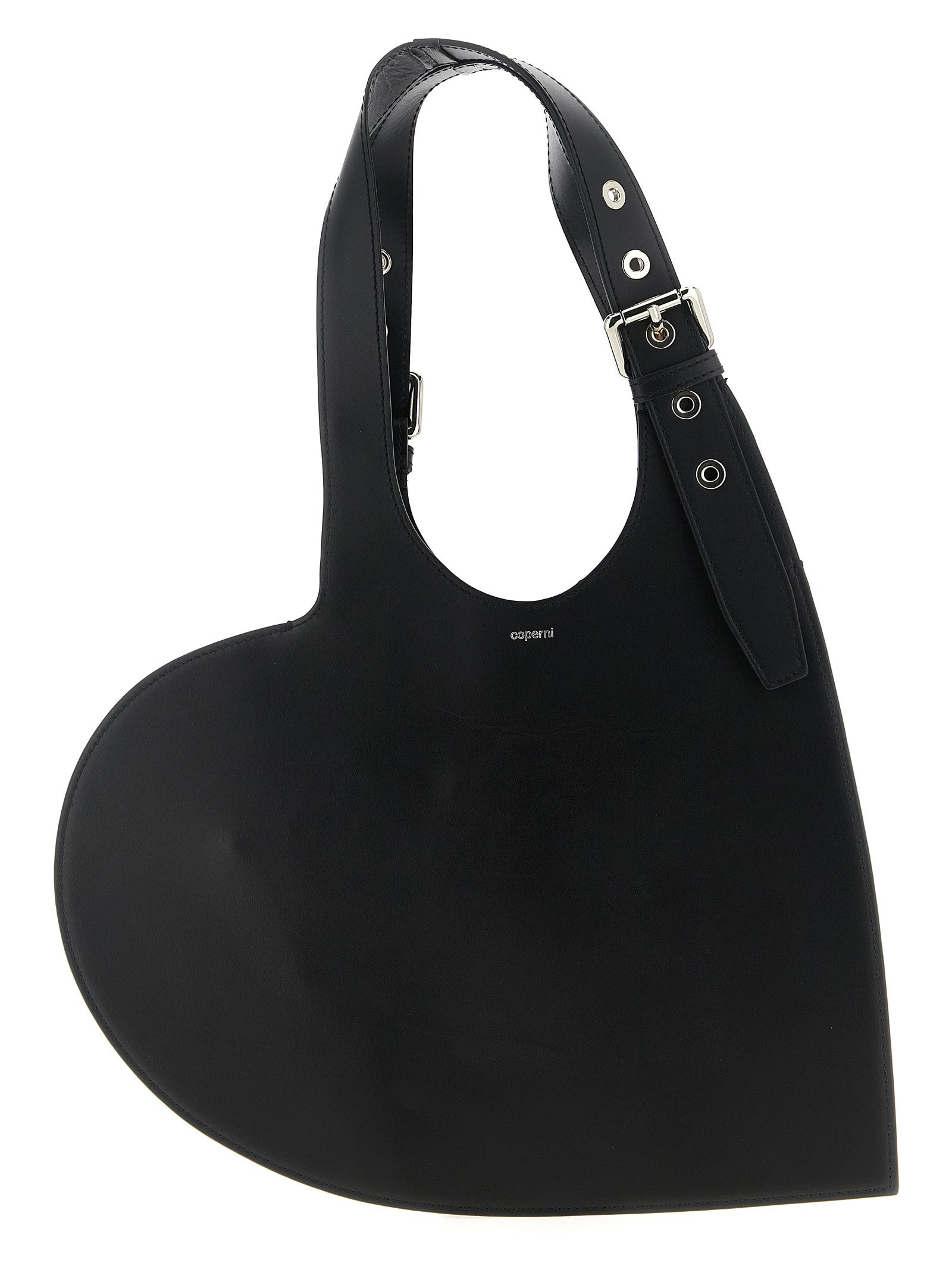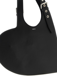 'Belt Heart' shoulder bag in smooth leather, heart-shaped model, front embossed logo, adjustable handle, metal details. - Colour: Black - Composition: 100% cow leather (Bos Taurus) - Country Of Manufacture: Italy - Dimension: W 33 x H 28.5 cm - MPN: COPBA112F6062BLK