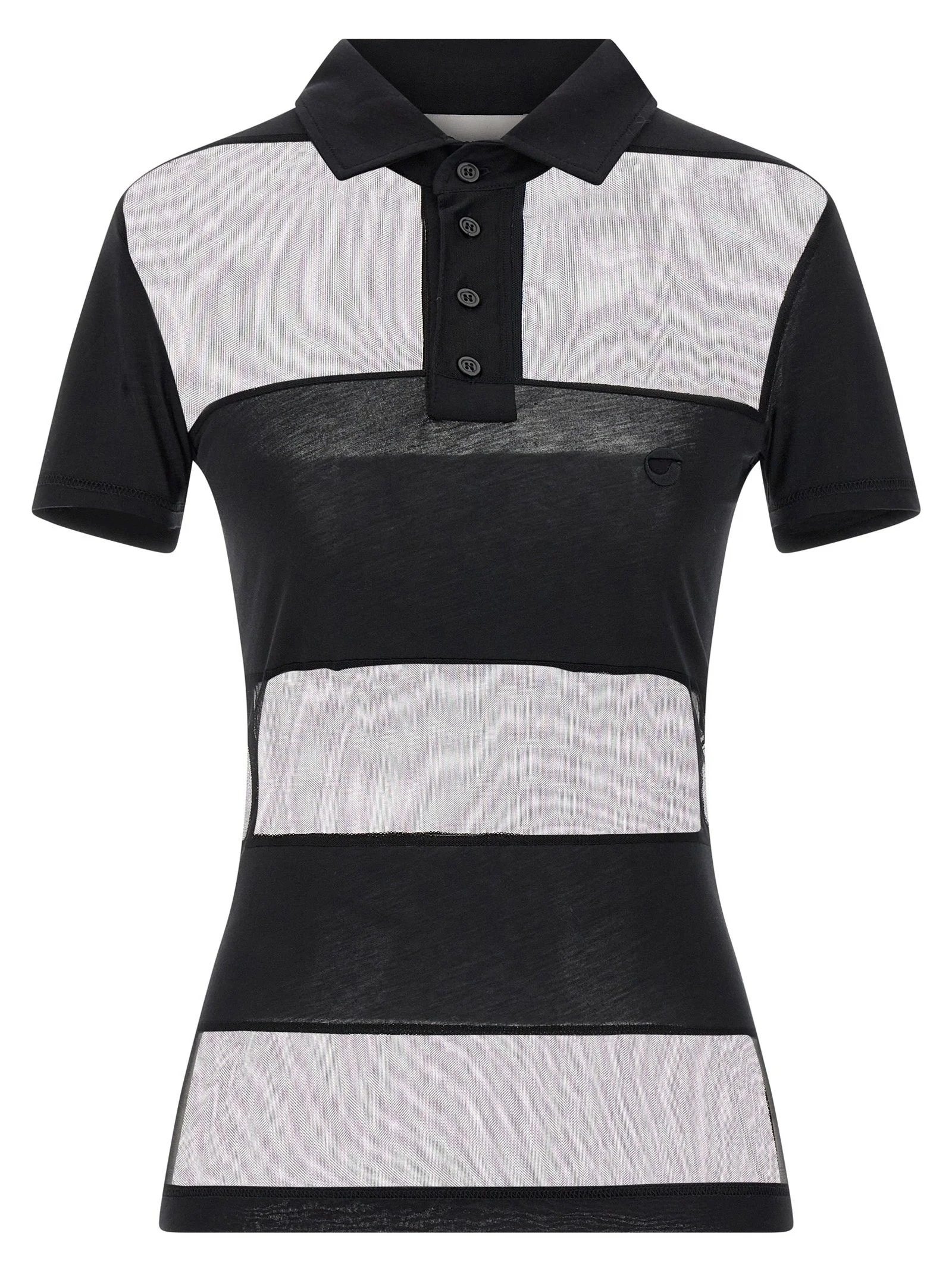 'Sheer Striped' polo shirt in stretch technical fabric with alternating opaque and transparent stripes, tone-on-tone logo embroidery on the front, collar, and buttons, short sleeves. - Colour: Black - Composition: 50% cotton 41% polyamide 9% elastane - Country Of Manufacture: Portugal - Dimension: true to size fit - MPN: COPJS115F5028BLK