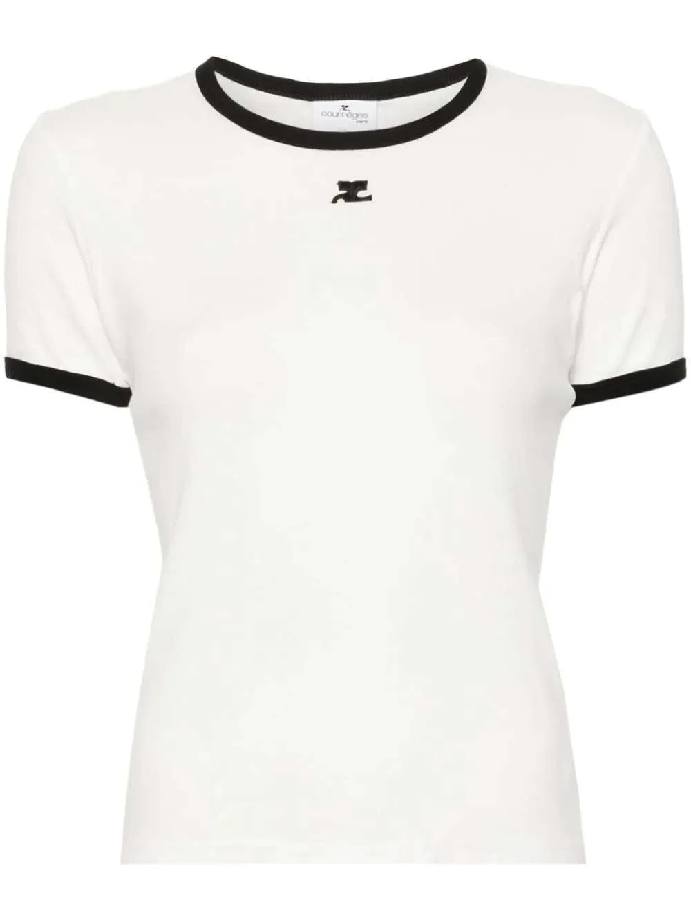 T-shirt with application Characteristics white cotton jersey weave contrasting ribbed edges crew neck short sleeves front application with logo straight hem Composition 100% cotton Washing instructions Machine wash Brand ID: VESJTS017JS0070 - Colour: White - Composition: Cotton, Fabric Main:100% COTON BIAIS:100% COTON - Country Of Manufacture: Not Selected - Dimension: KG 0,5 - MPN: VESJTS017JS0070HERITAGEWHITEBLACK0098