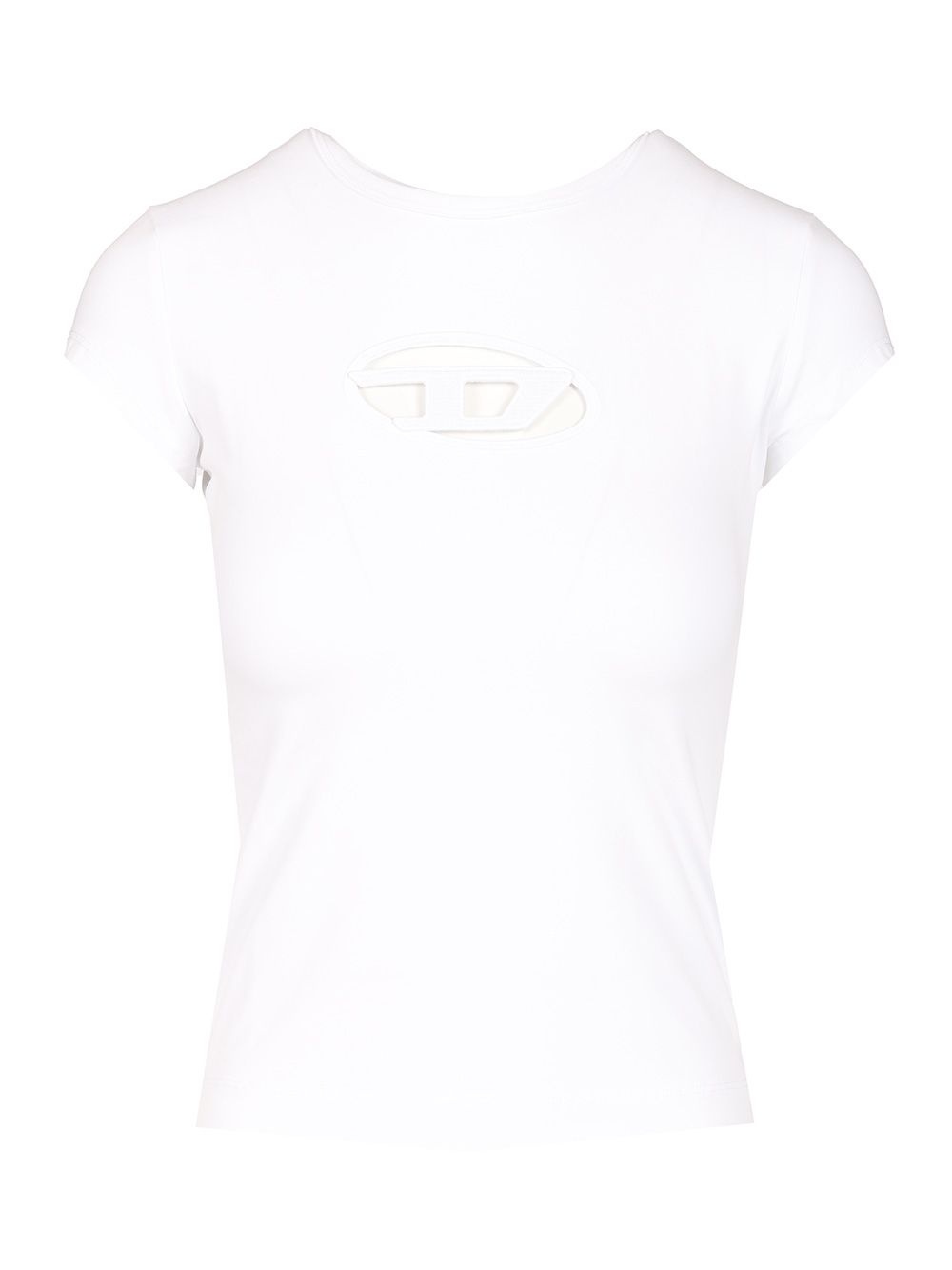 90's style slim fit top in stretch jersey from Diesel. - Colour: White - Composition: 93%CO 7%EA+RIB97%CO 3%EA+EMBROIDERY YARN100%PL - Country Of Manufacture: CN - MPN: A062680AFAA100