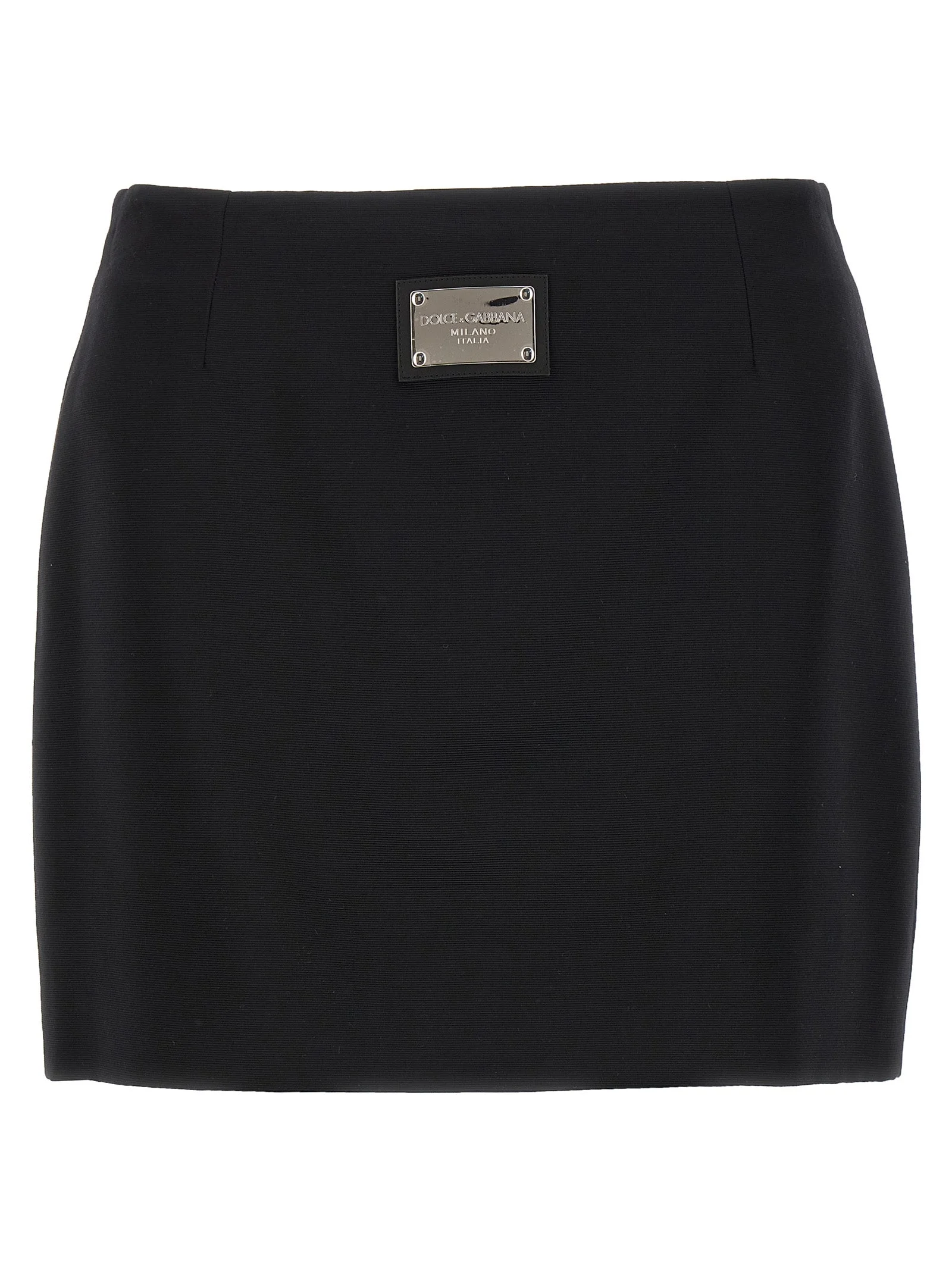 Mini skirt from the ‘Black Sicily’ collection in ottoman fabric with logo plaque on the front, rear zip closure, and stretch satin lining with jacquard logo. - Colour: Black - Composition: 100% viscose - Country Of Manufacture: Italy - Dimension: true to size fit - MPN: F4CLKTFU8BMN0000