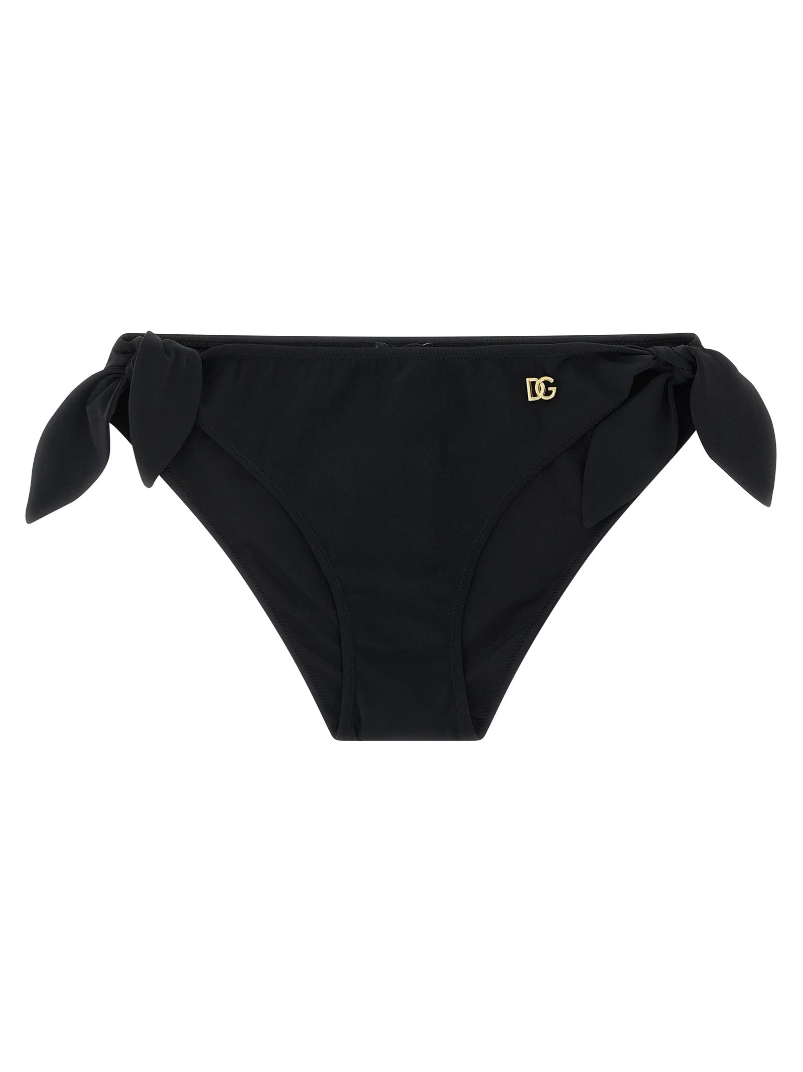 Bikini bottoms in precious sensitive fabric, metal 'DG' logo on the front, adjustable side bows, classic cover. - Colour: Black - Composition: 75% polyamide, 25% elastane - Country Of Manufacture: Italy - Dimension: Ture to size fit - MPN: O2A06JONO12N0000