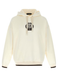 Gauze cotton hoodie with contrast details, embroidery and front logo patch, pockets, long cuffed sleeves and dropped shoulders. - Colour: White - Composition: 100% cotton - Country Of Manufacture: Italy - Dimension: Comfort fit - MPN: G9BOUZHU7DUW0001