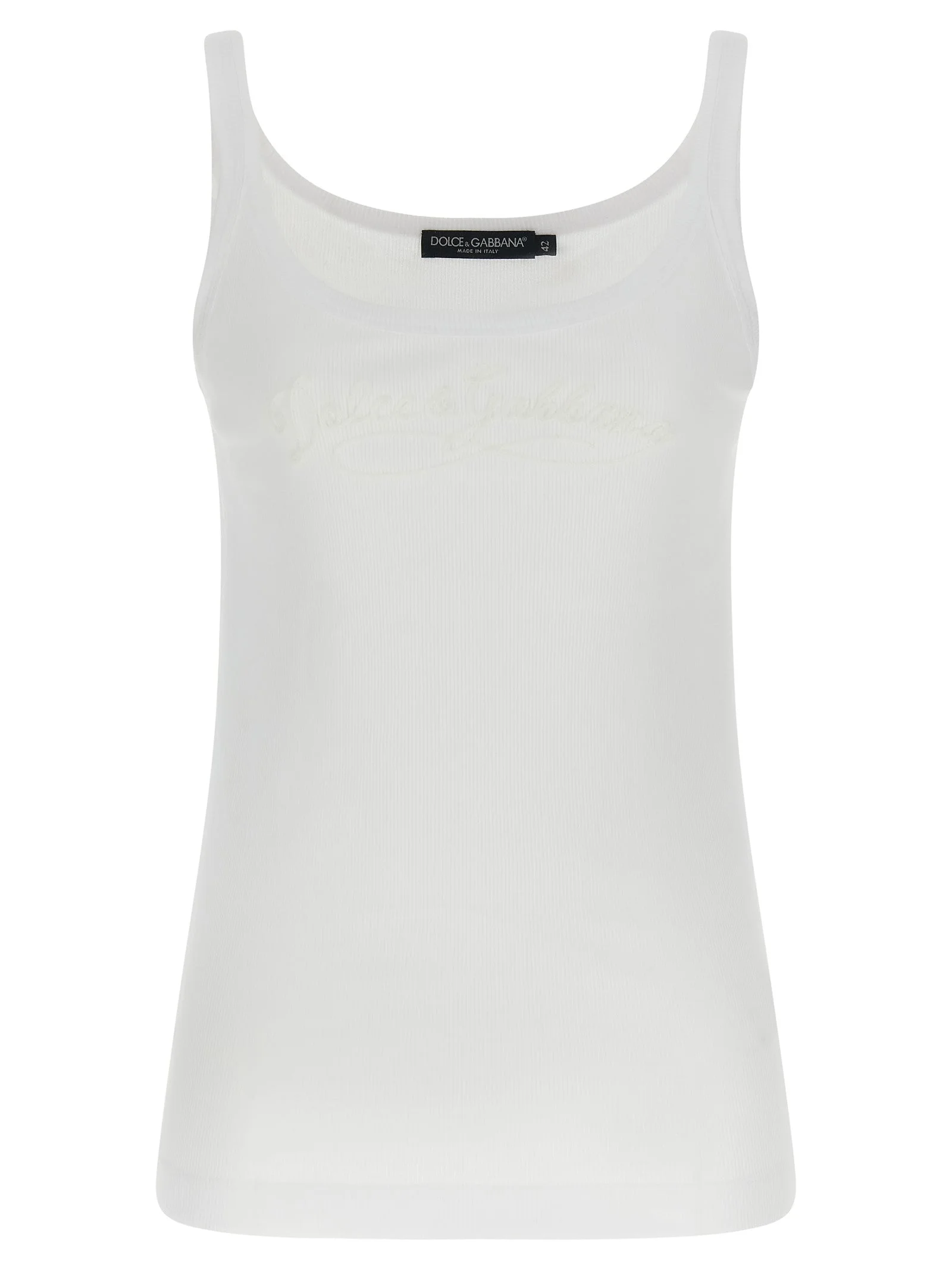 Ribbed stretch cotton tank top with tone-on-tone embroidered logo on the front, and wide round neckline. - Colour: White - Composition: 100% cotton - Country Of Manufacture: Italy - Dimension: true to size fit - MPN: F8K97ZGDDL0W0800
