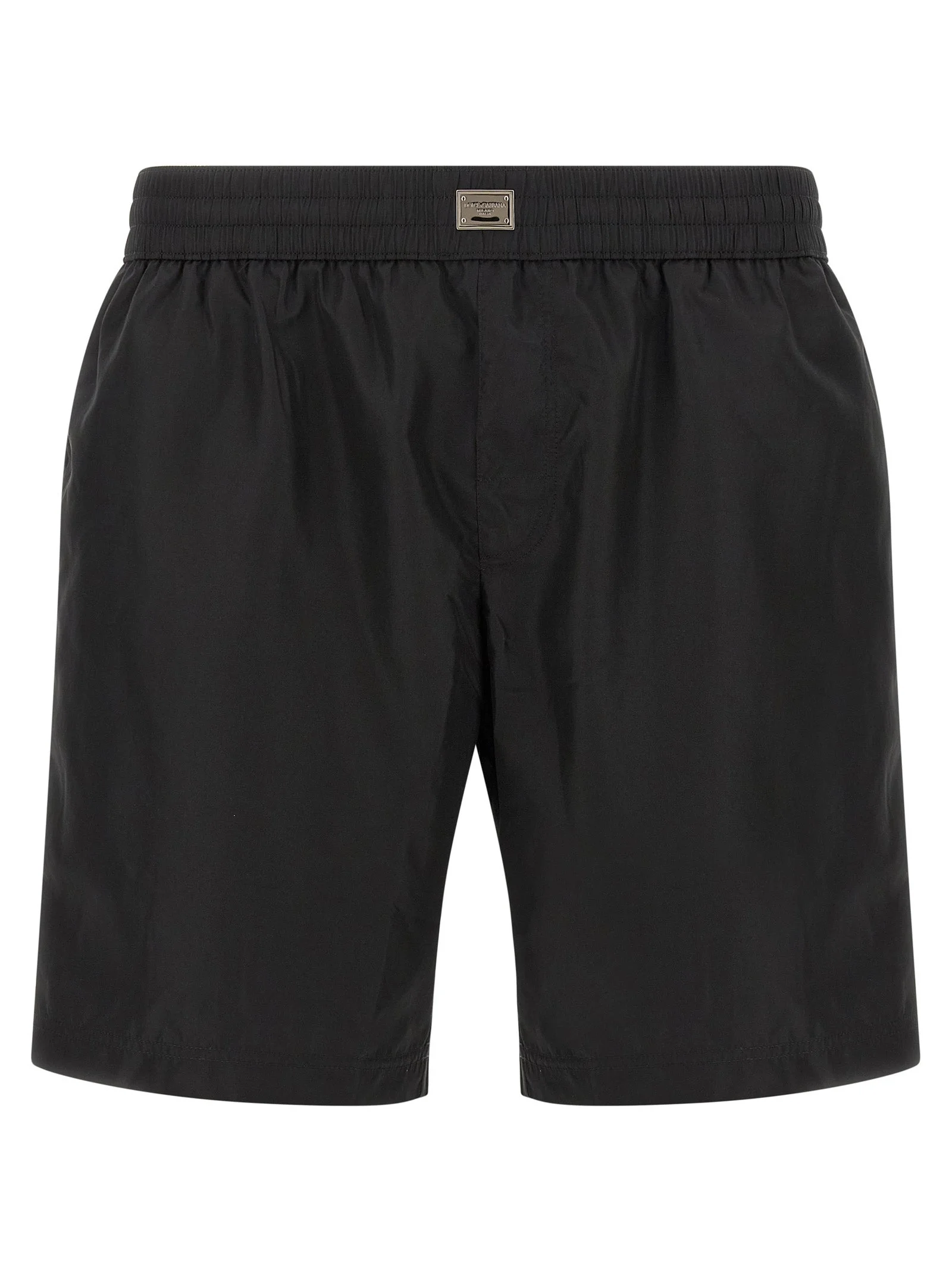 Light nylon swimsuit, medium model, metal plate with front engraved logo, adjustable drawstring elastic at the waist, trompe l'oeil flap, pockets, inner briefs. - Colour: Black - Composition: 88% polyamide, 12% elastane - Country Of Manufacture: Italy - Dimension: true to size fit - MPN: M4F36TONR46N0000