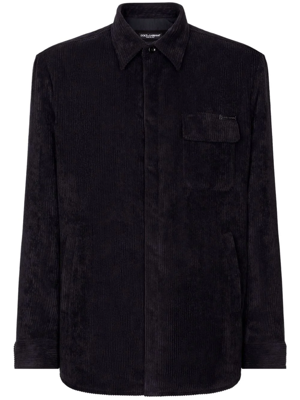 black stretch-design corduroy front button fastening pointed flat collar long sleeves mini logo tag chest patch pocket two side welt pockets buttoned cuffs curved hem - Colour: Blacks and greys - Composition: 86%pl 11%pa 3%ea - Country Of Manufacture: Italia - MPN: G5MC4TFUWDLN0000