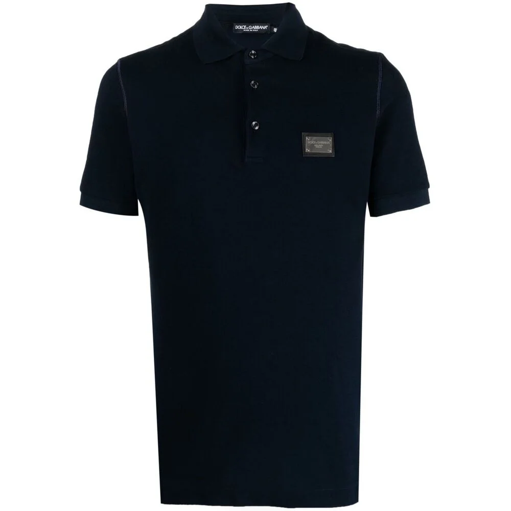 navy blue cotton silver-tone hardware pique weave ribbed trim logo patch at the chest polo collar short front button fastening short sleeves straight hem - Colour: Blue - Composition: Cotton: 100.0%, Polyester: 25.0%, Brass: 5.0%, Acrylonitrile Butadiene Styrene (abs): 70.0% - Country Of Manufacture: Italy - MPN: G8PL4TG7F2HB0665 - Size Family: IT