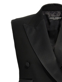 Sleeveless double-breasted wool gabardine tuxedo jacket