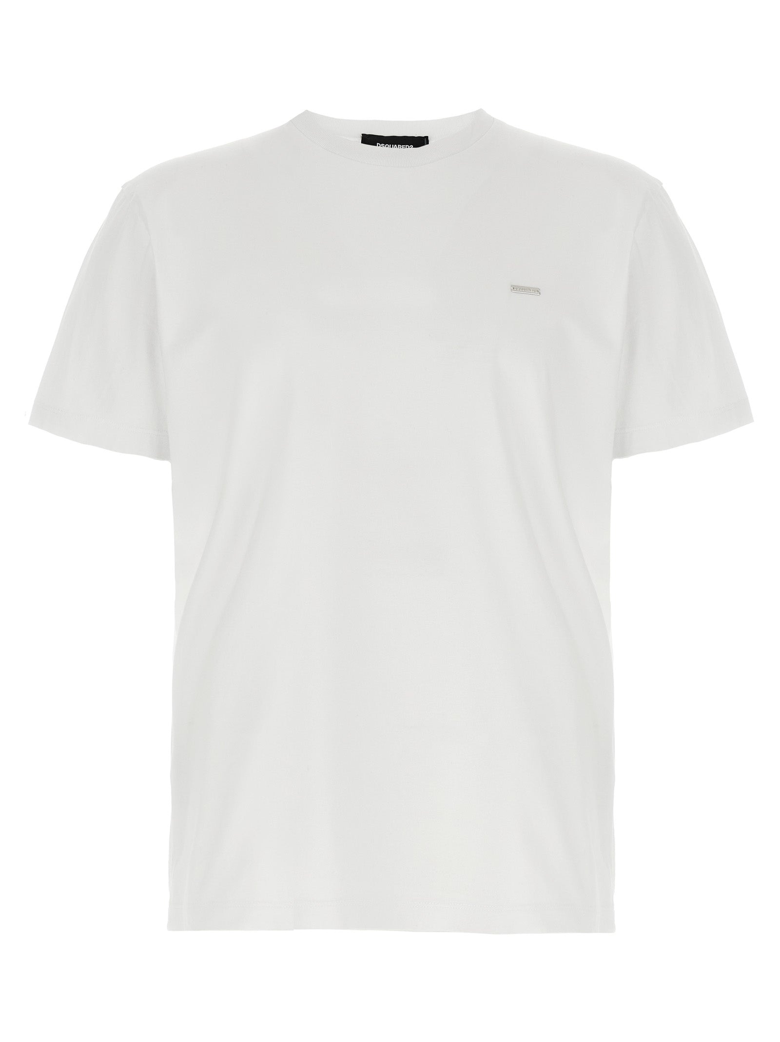 'Cool fit' cotton, crew neck t-shirt with metal logo applique and short sleeves. - Colour: White - Composition: 100% cotton - Country Of Manufacture: Romania - Dimension: True to size fit - MPN: S74GD1253D20020100