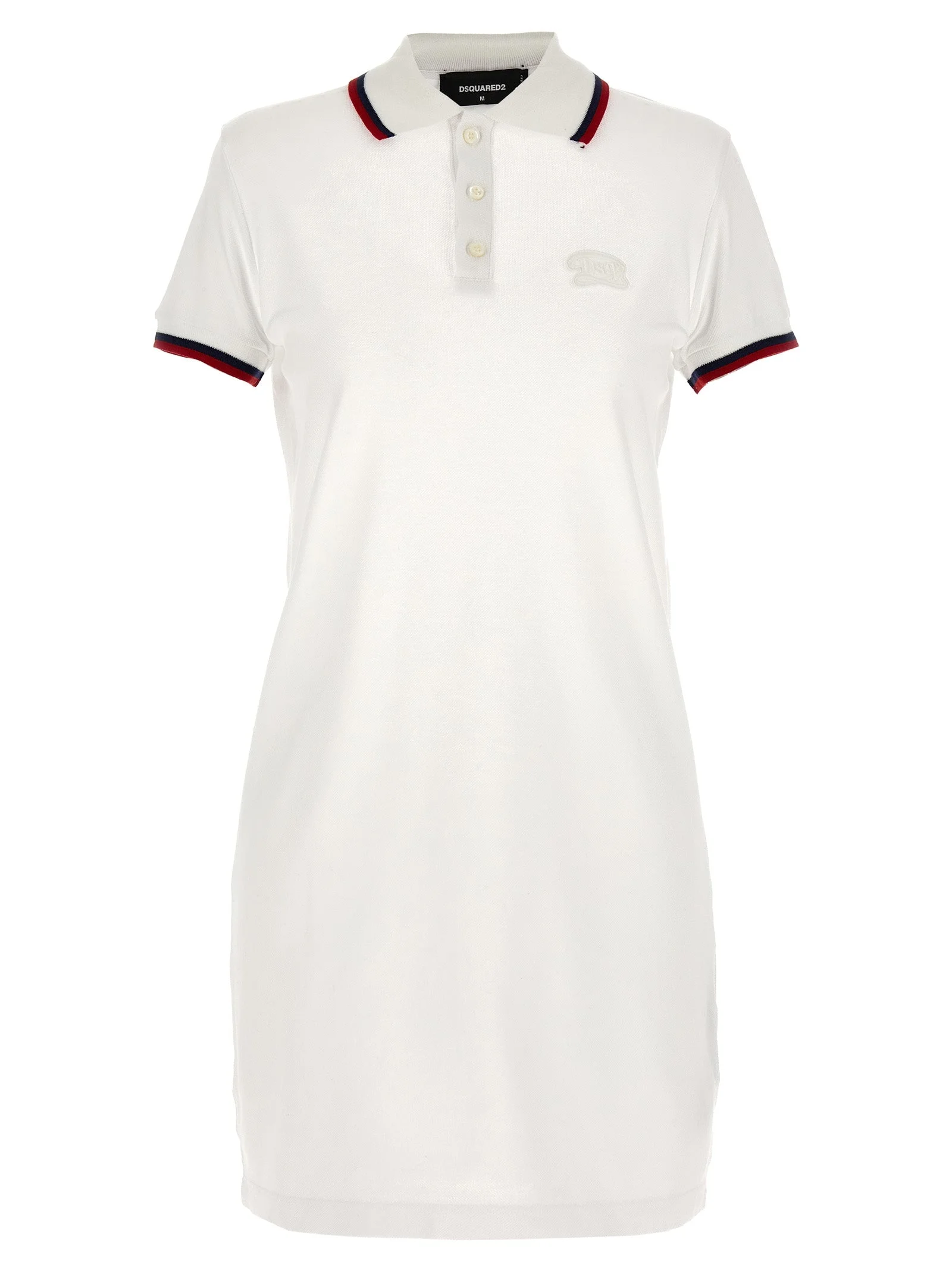 Pique cotton polo dress with maxi cut out on the back, front logo embroidery, short sleeves. - Colour: White - Composition: 100% cotton - Country Of Manufacture: Italy - Dimension: true to size fit - MPN: S72CV0477S22743100