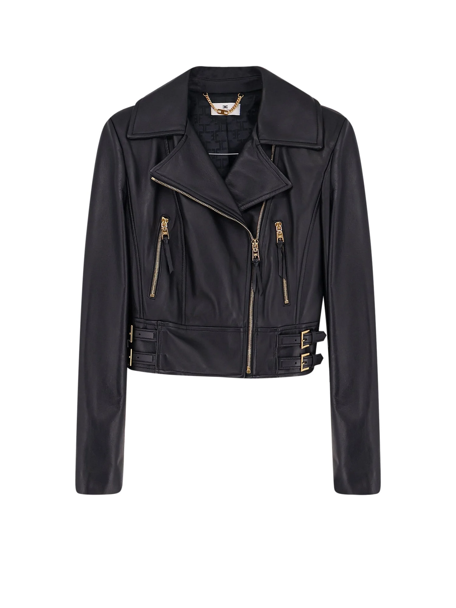 Asymmetrical zip closure Front zip pockets Leather straps with buckles Long sleeves with zip Made in Italy Leather Lining: 92% polyester, 8% elastane SKU: GD57Z61E2110 - Colour: Blacks and greys - Composition: Pelle - Country Of Manufacture: ITALIA - MPN: GD57Z61E2110