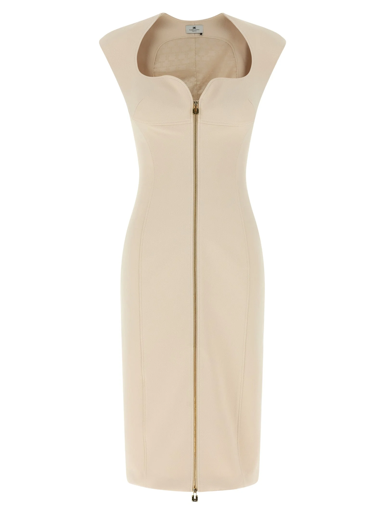 Crepe dress with sweetheart neckline, sheath dress, front zipper closure, sleeveless, back split, monogram lining. - Colour: Beige - Composition: 96% polyester, 4% elastane - Country Of Manufacture: Italy - Dimension: Slim fit - MPN: AB90061E2193