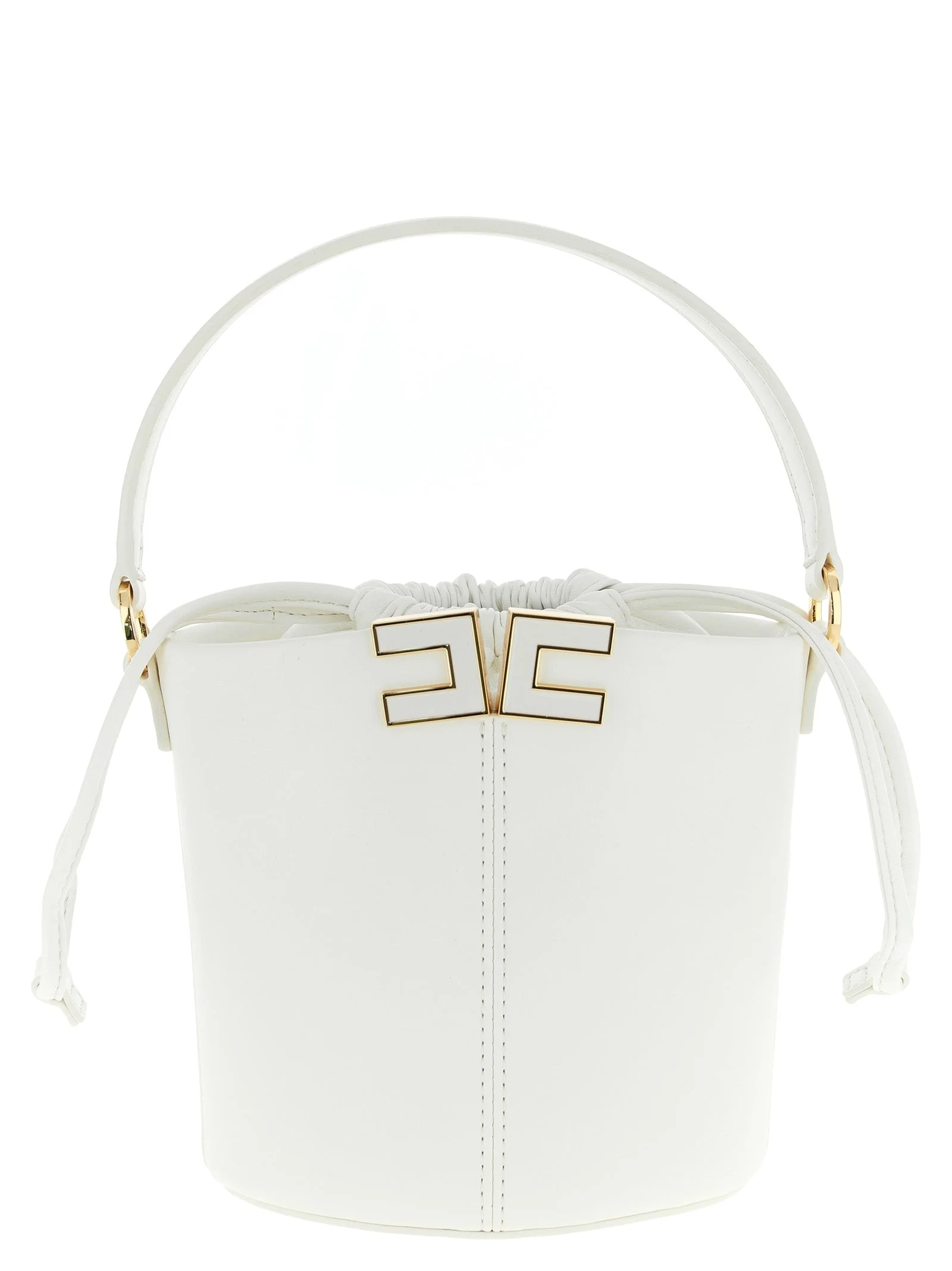 Leather bucket bag, rigid structure, tone-on-tone nappa leather insert with drawstring closure, fixed handle, front enameled metal logo, back embossed logo, removable chain shoulder strap. - Colour: Beige - Composition: 50% polyurethane 40% polyester 10% cotton - Country Of Manufacture: China - Dimension: W 14 x H 16 x D 9 cm - MPN: BS92A61E2360
