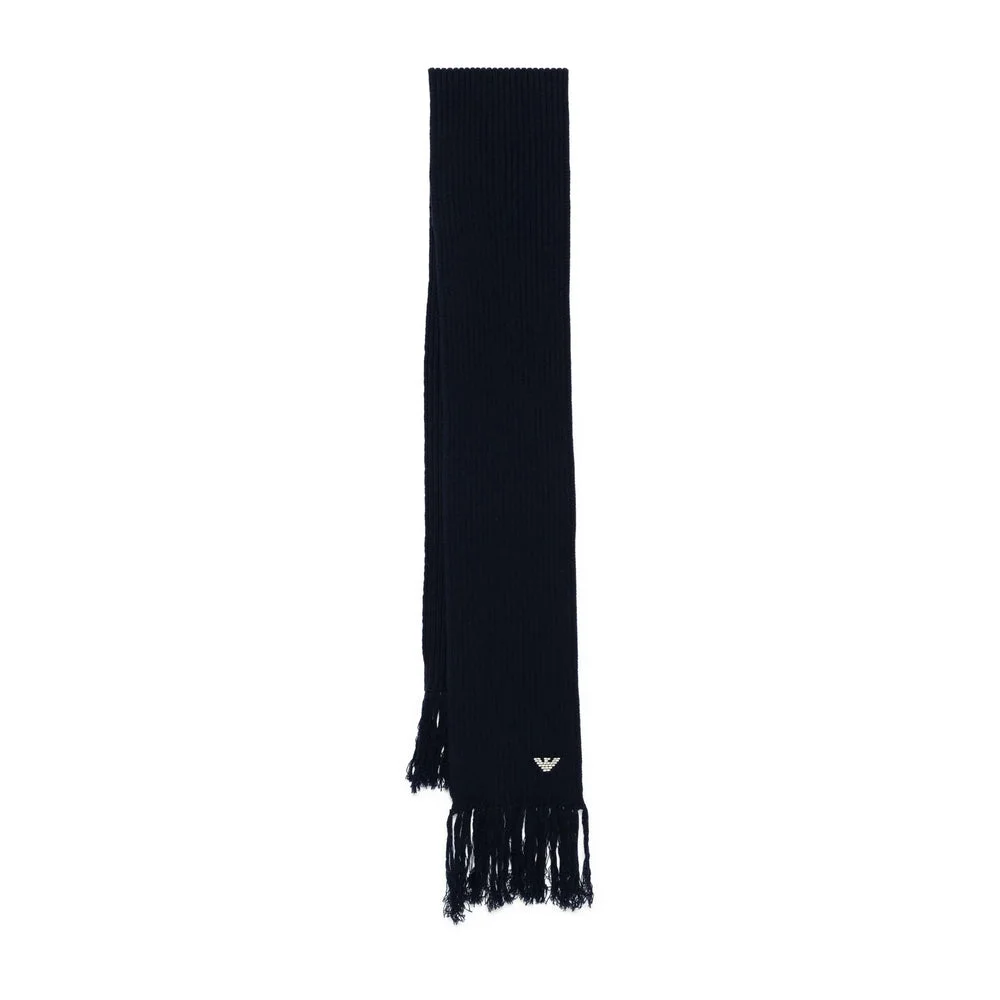 navy blue ribbed knit fringed trim small embroidered logo - Colour: Blue - Composition: Cotton: 30.0%, Polyamide: 45.0%, Virgin Wool: 25.0% - Country Of Manufacture: China - Dimensions: length: 270.0 centimetres, width: 30.0 centimetres - MPN: AF17000EM003651UB102