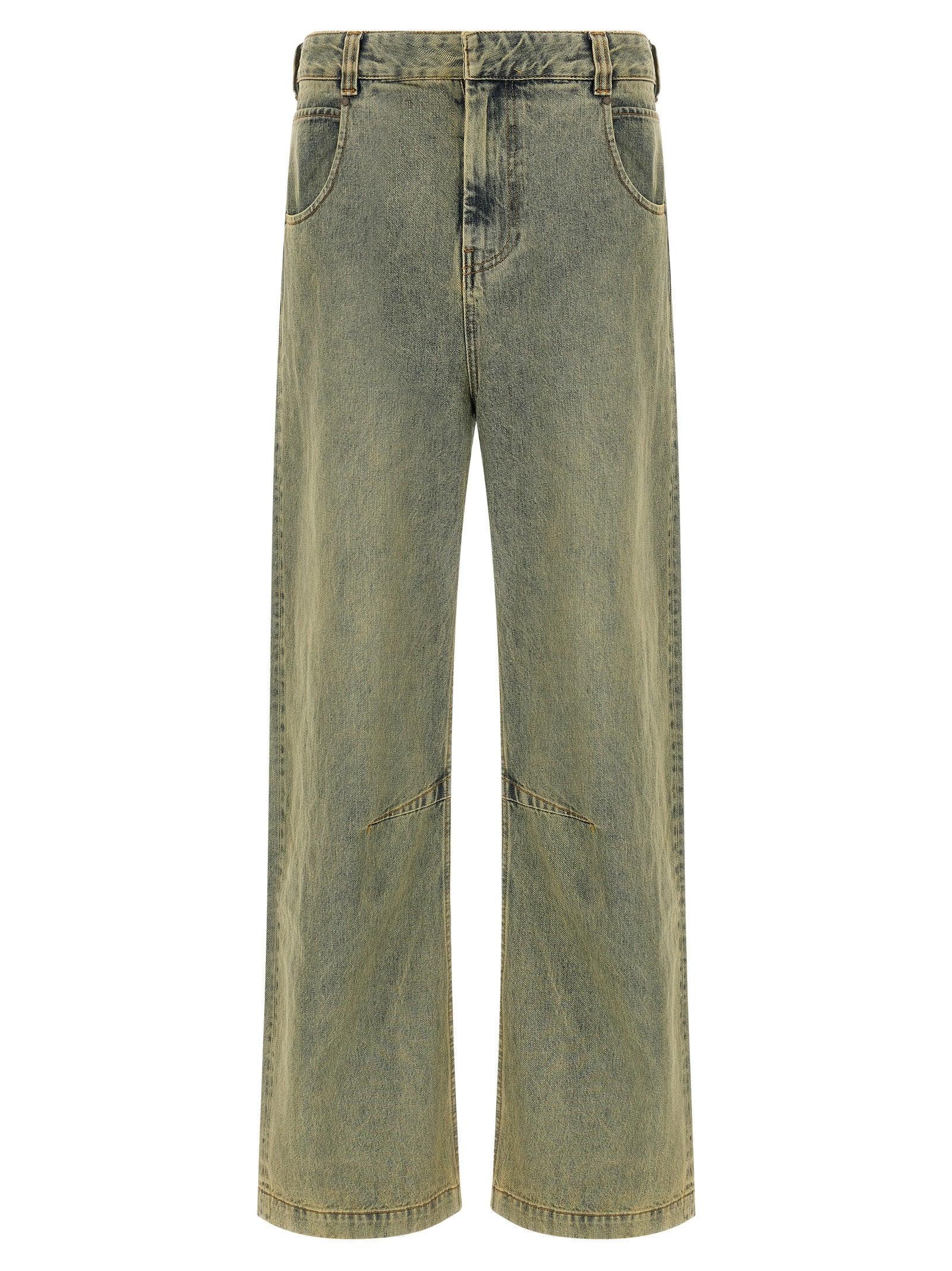 'Gem Surface Wave' jeans in selvedge Japanese cotton denim, zip and front button closure, five pockets, wide and straight leg, knee pin, back logo tag. - Colour: Yellow - Composition: 100% cotton - Country Of Manufacture: China - Dimension: true to size fit - MPN: ESUS2511007SWSW