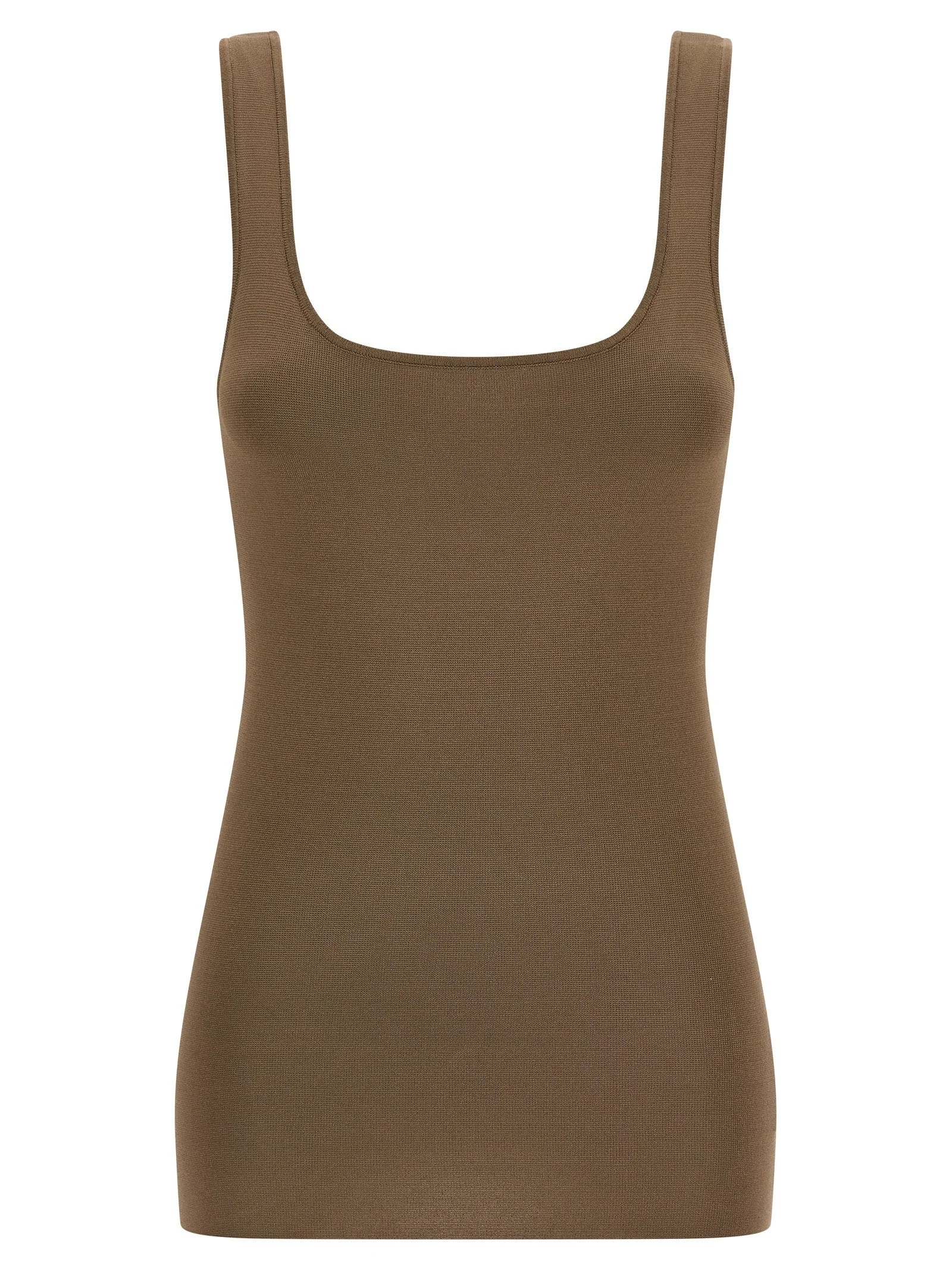 Stretch viscose top with square neckline at the front and back. - Colour: Brown - Composition: 83% viscose, 17% polyester - Country Of Manufacture: China - Dimension: true to size fit - MPN: ESSS26TO032370087