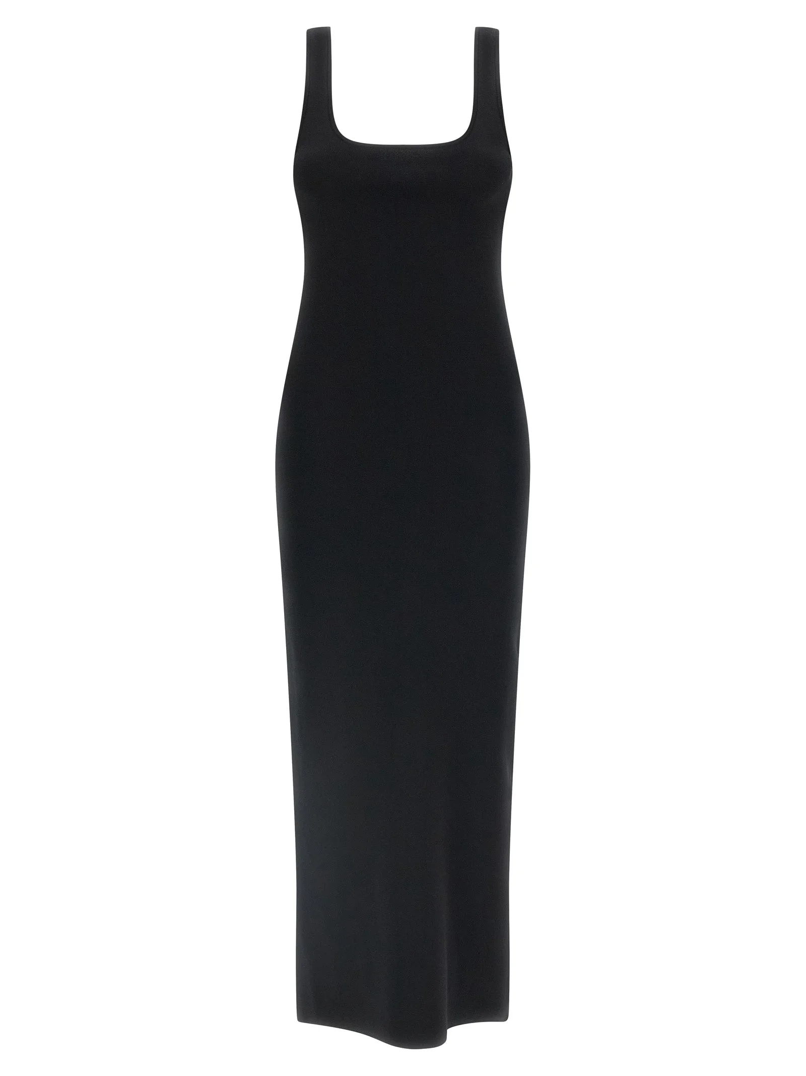 Sleeveless midi dress in stretch viscose with square neckline on the front and back, sheath silhouette. - Colour: Black - Composition: 83% viscose, 17% polyester - Country Of Manufacture: China - Dimension: true to size fit - MPN: ESSS26DR032370015