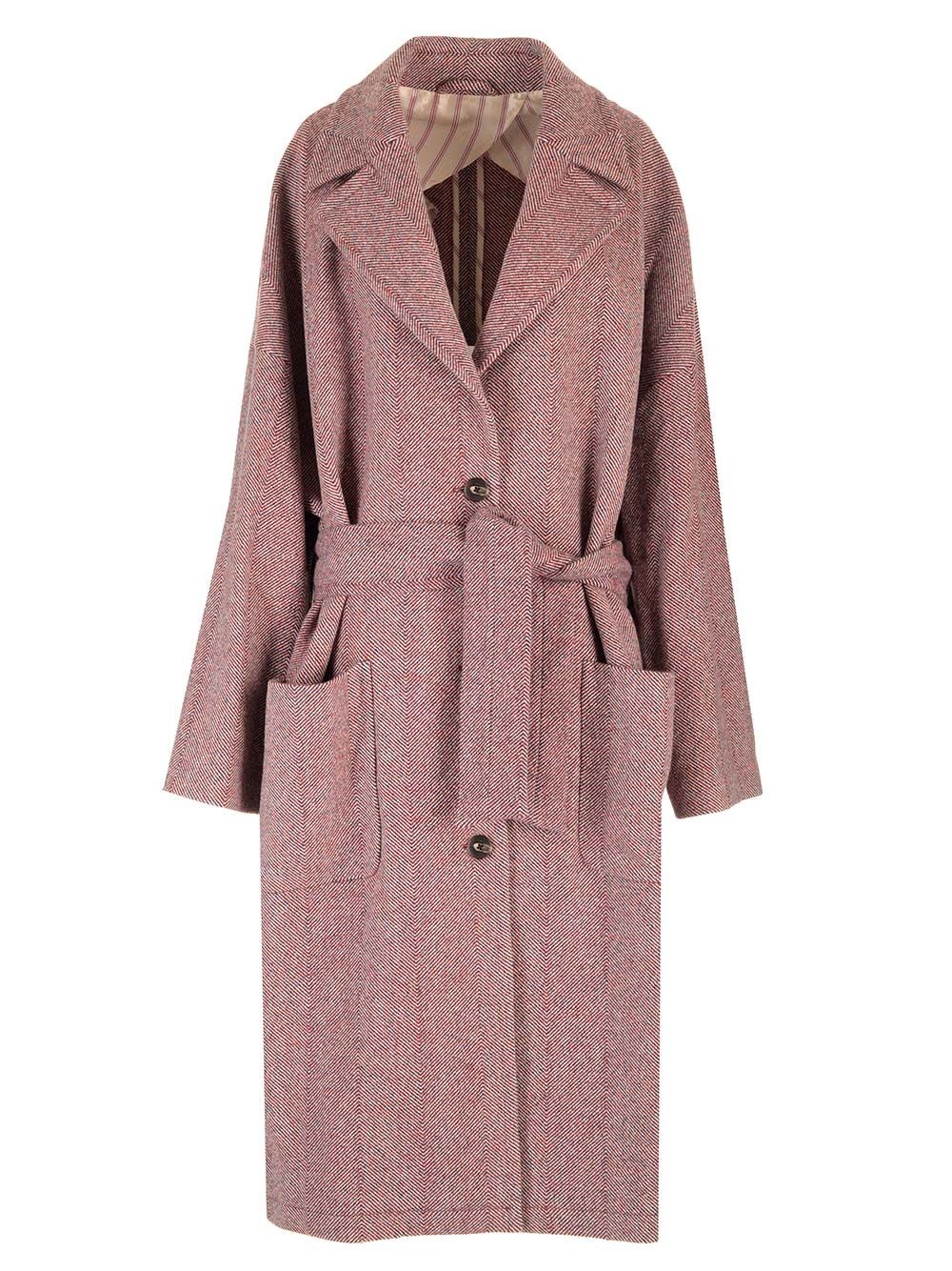 Long coat with oversized fit from Etro, made of wool tweed with a burgundy chevron pattern and a matching belt. Striped lining, lapel collar, single-breasted button closure, side pockets. - Colour: Bordeaux - Composition: " 80% Lana 20% Nylon Dettaglio 52% Viscosa 48% Ace - Country Of Manufacture: IT - MPN: WRAA003899TTB52S8462