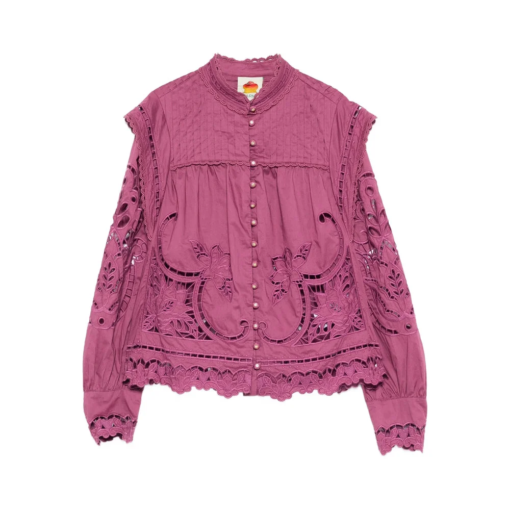 pink floral cut-out scalloped hem gathered detailing button fastening long sleeves - Colour: Purple - Composition: Cotton: 100.0% - Country Of Manufacture: China - MPN: 344402L0027
