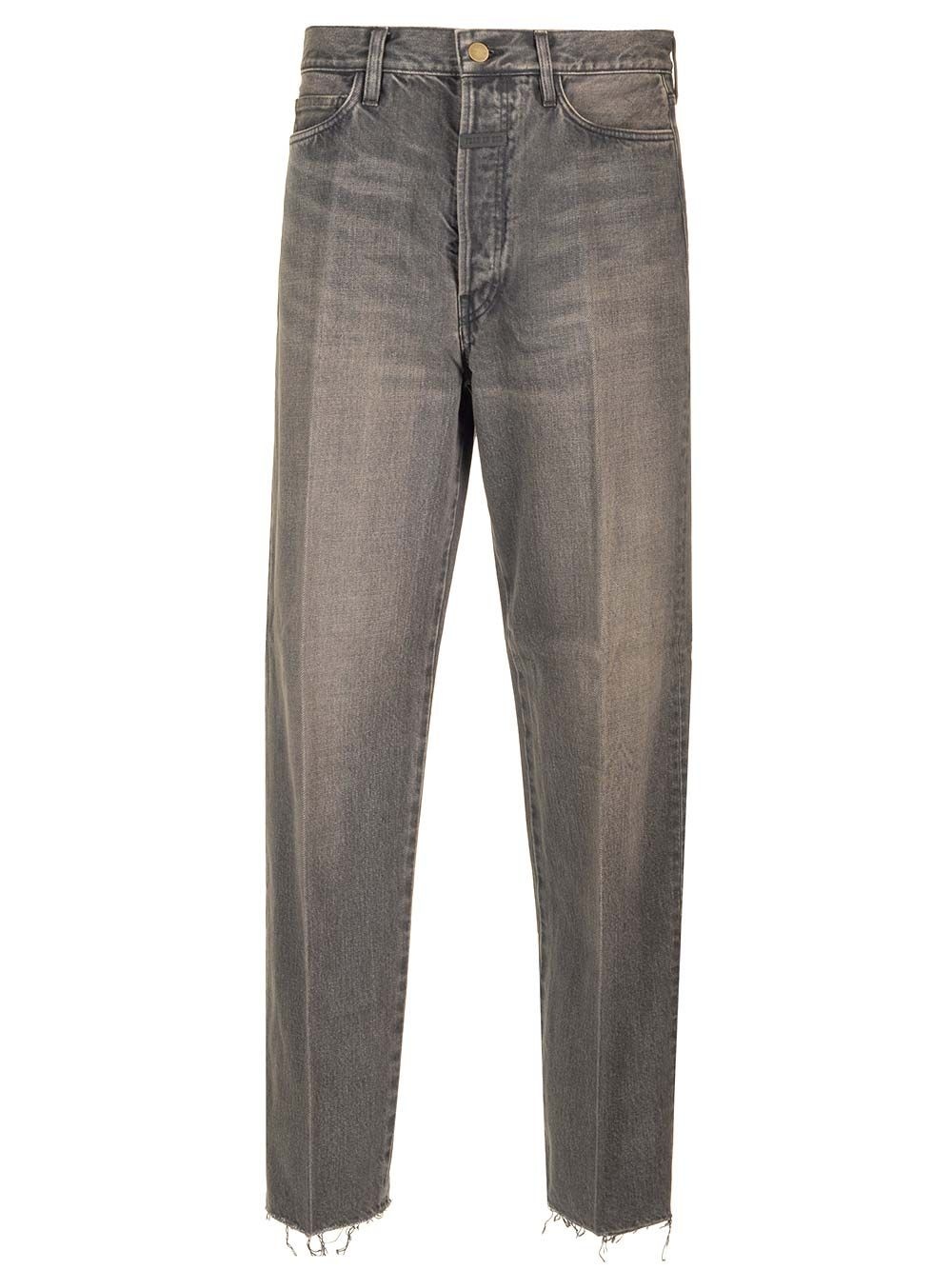 Relaxed 5-pocket jeans from Fear of God in vintage black Japanese denim, featuring a straight leg, antiqued brass hardware and a raw ankle hem. - Colour: Black - Composition: SELF: 100% COTTON, POCKETING: 100% COTTON - Country Of Manufacture: JP - MPN: FG24FW402009DNM010VINTAGEBLACK