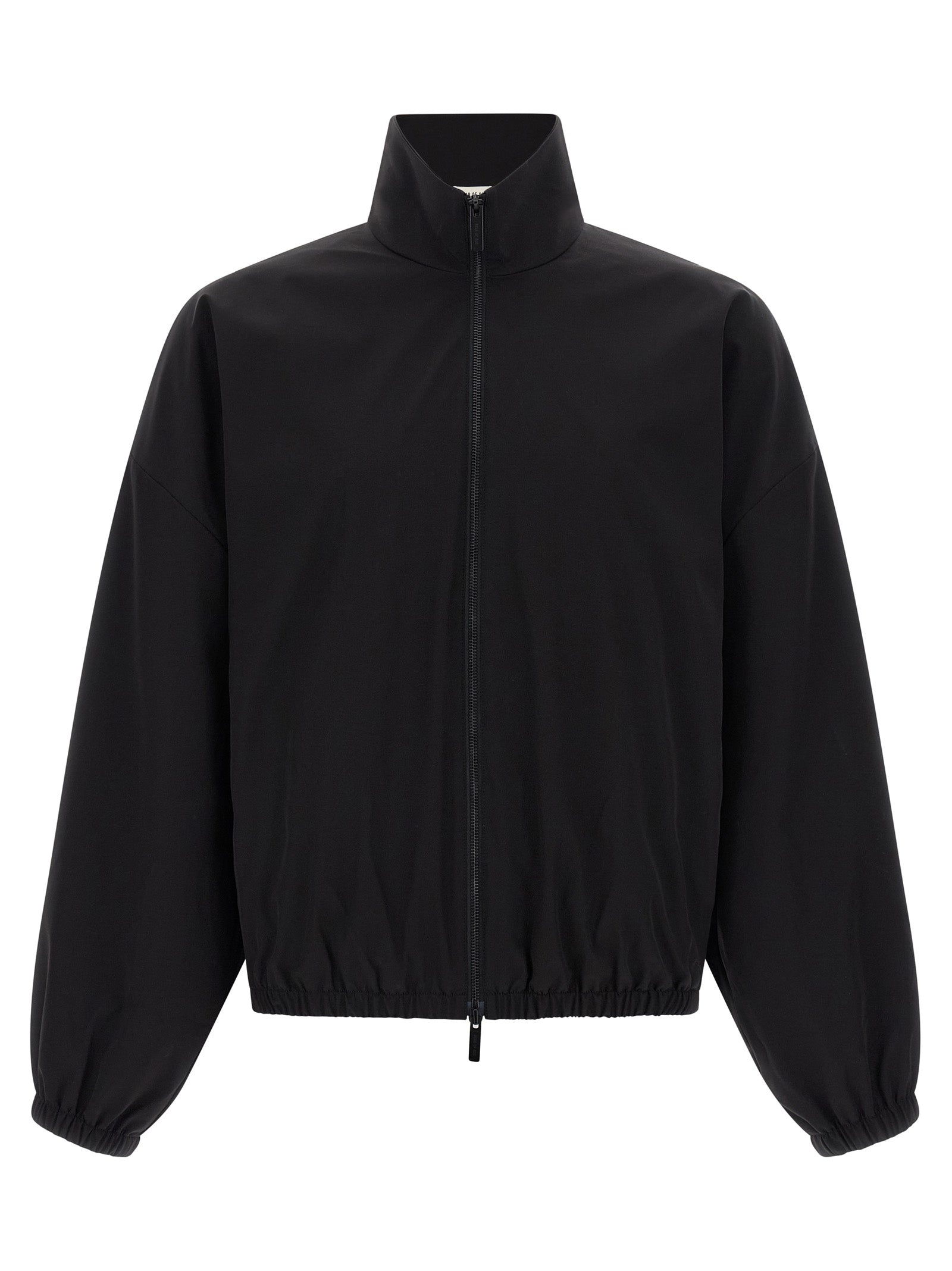 'Track' synthetic fabric jacket, high neck, front zip closure, pockets, long sleeves with elastic cuffs and dropped shoulders, leather logo patch on the back, elastic hem. - Colour: Black - Composition: 51% polyamide 42% polyester 7% elastane - Country Of Manufacture: Italy - Dimension: Comfort fit - MPN: FG25FW32327PONBLACK