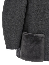 Double melange wool fabric blouson with cocoon line, single-breasted collar with concealed front button closure, sheepskin pockets, long wide curved sleeves, and a custom interior with tone-on-tone FF pattern. - Colour: Gray - Composition: 99% virgin wool 1% silk - Country Of Manufacture: Italy - Dimension: true to size fit - MPN: FJ7647A5HDF1M2T