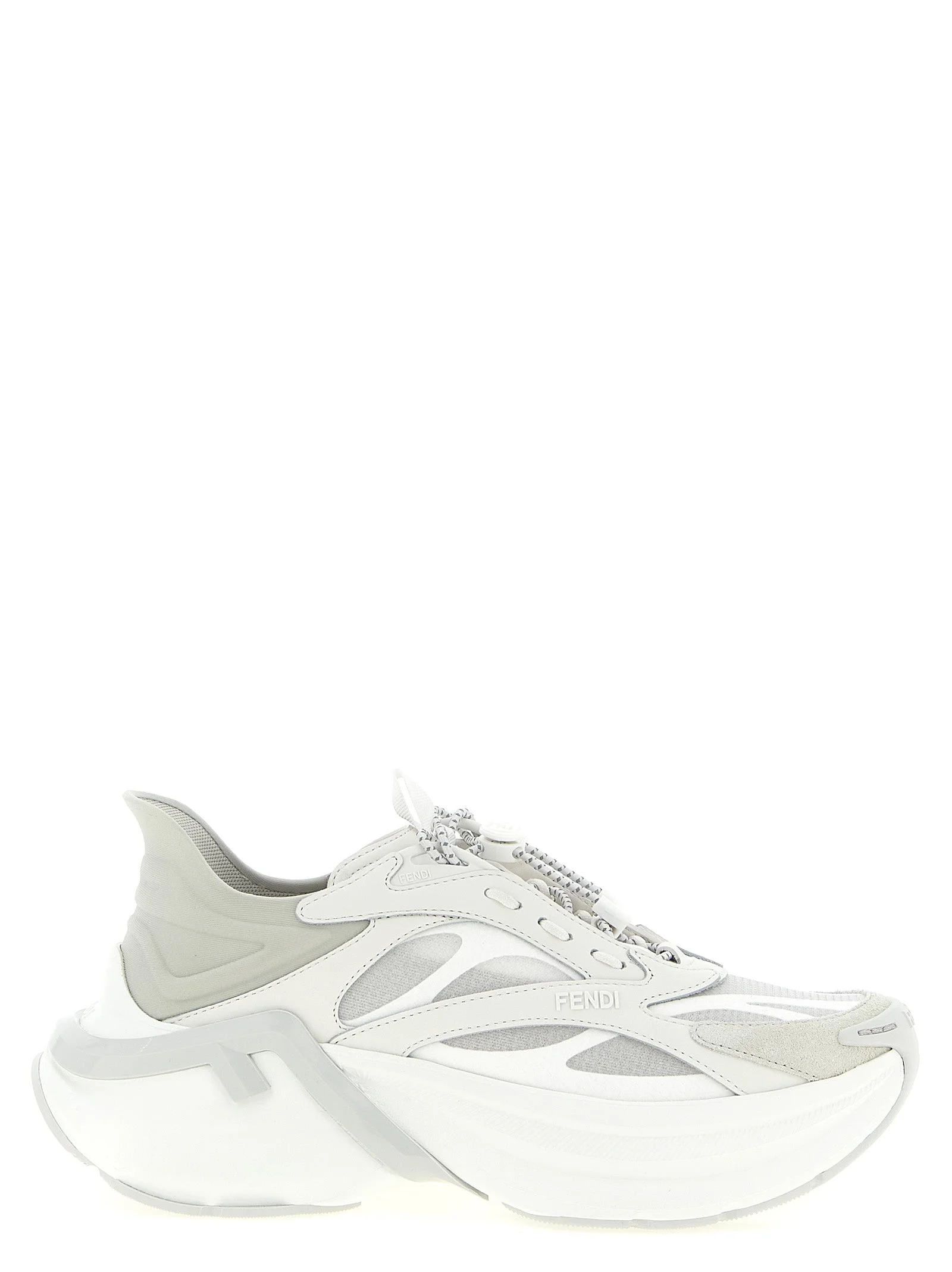'Fendi F-Light' running sneakers in mesh, leather and suede, trekking laces closure with quick stopper customized with FF pattern, three-dimensional rubber logo on the side, chunky ultra-light rubber sole. - Colour: Gray - Composition: 100% calfskin leather (Bos Taurus) - Country Of Manufacture: Italy - Dimension: EU WOMAN - Heels: 6 cm - MPN: 8E8887AYFPF1V80